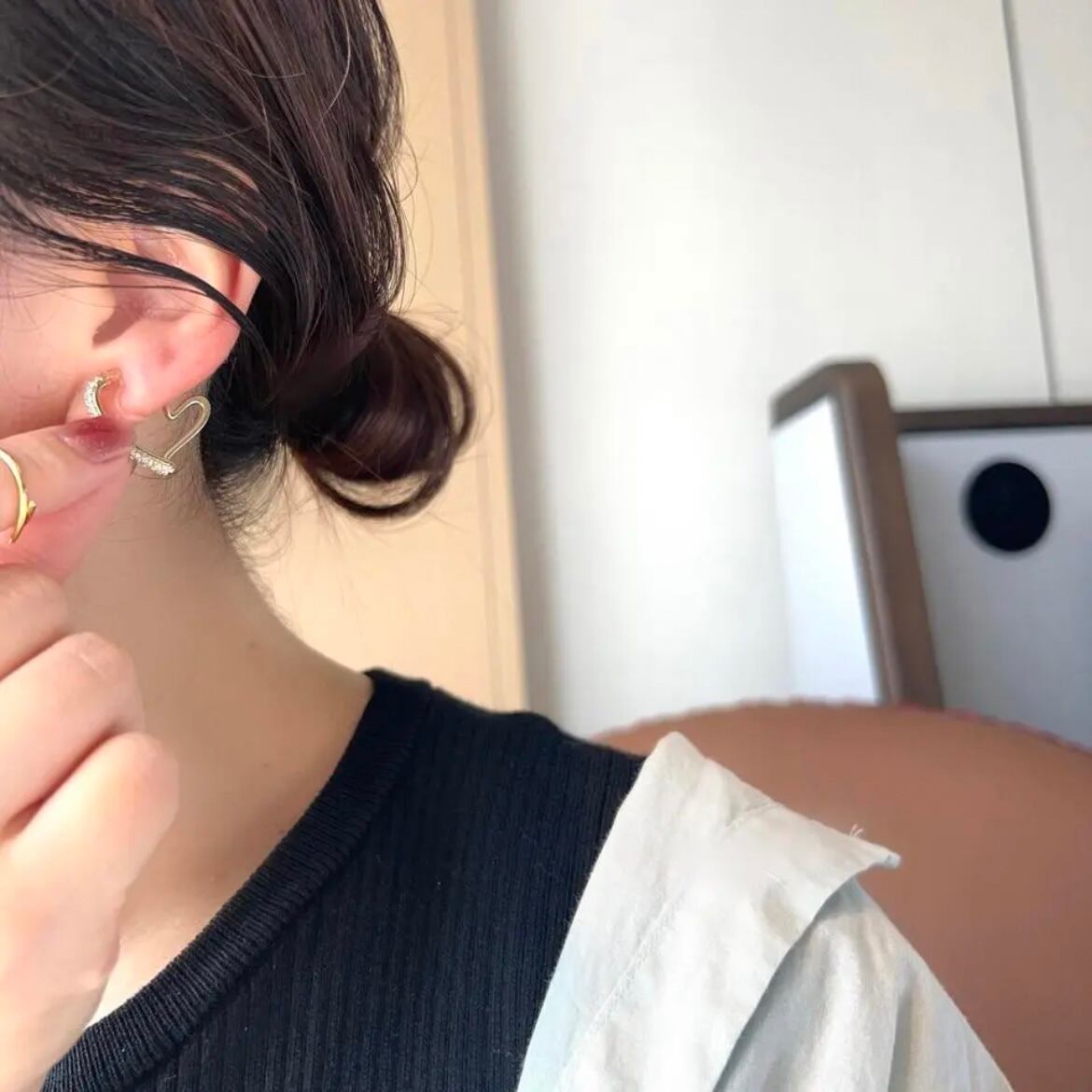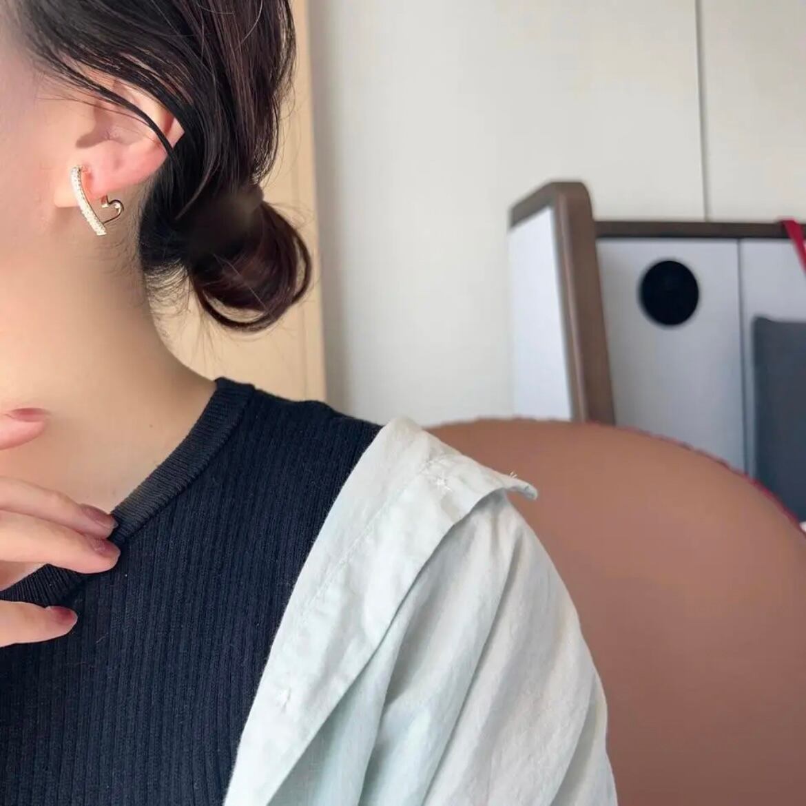 フープが耳の下をぐるりと囲んだ珍しい型をしており、ピアスをしているかのような見た目です。