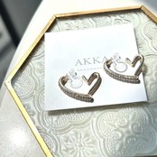 キュービックジルコニアビジューを装飾したハートのフープイヤリングです。