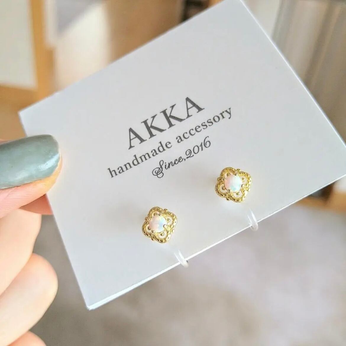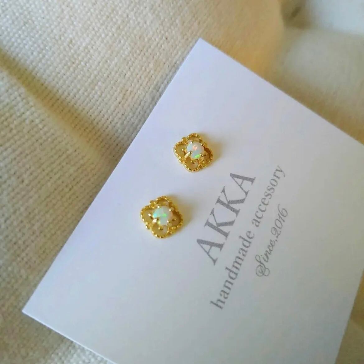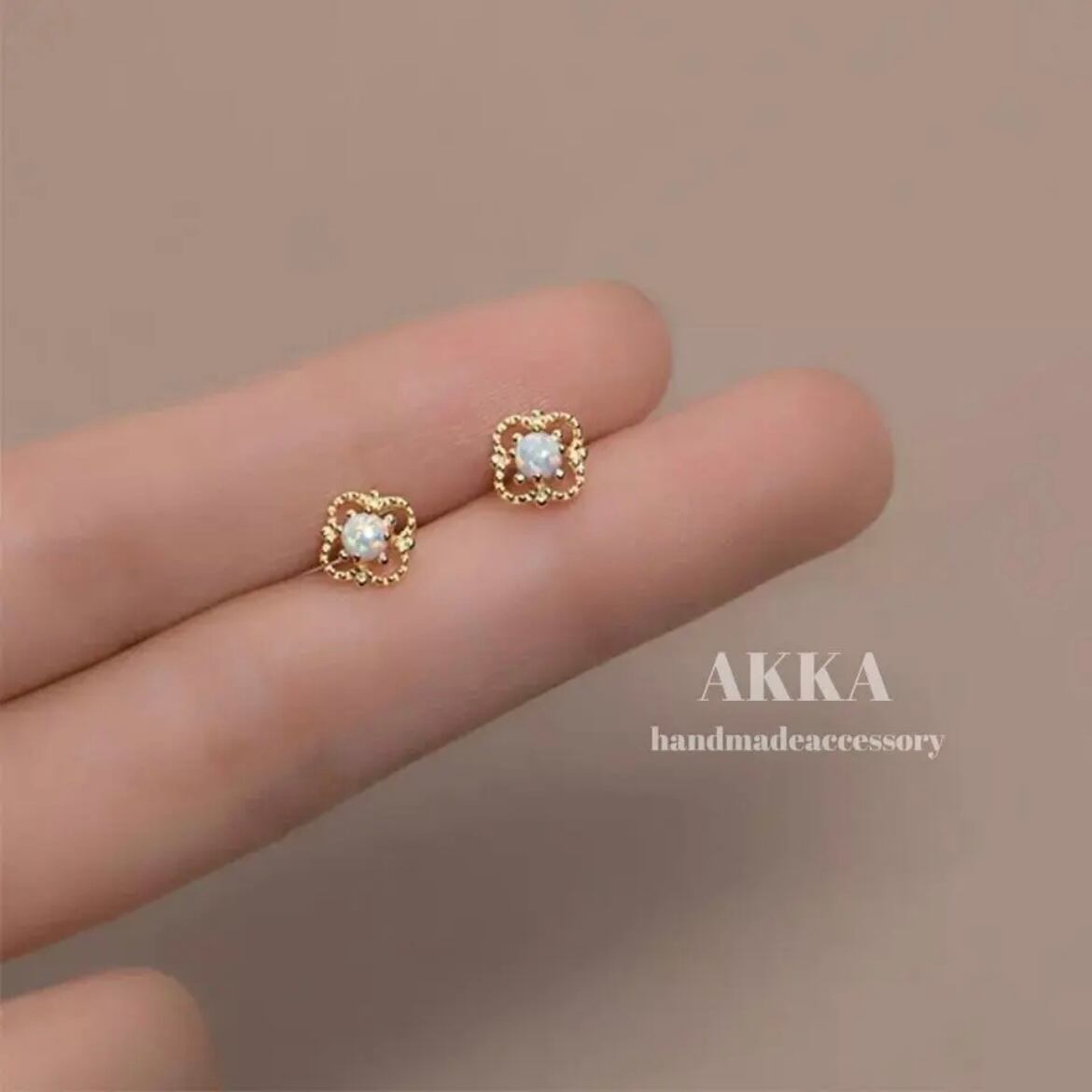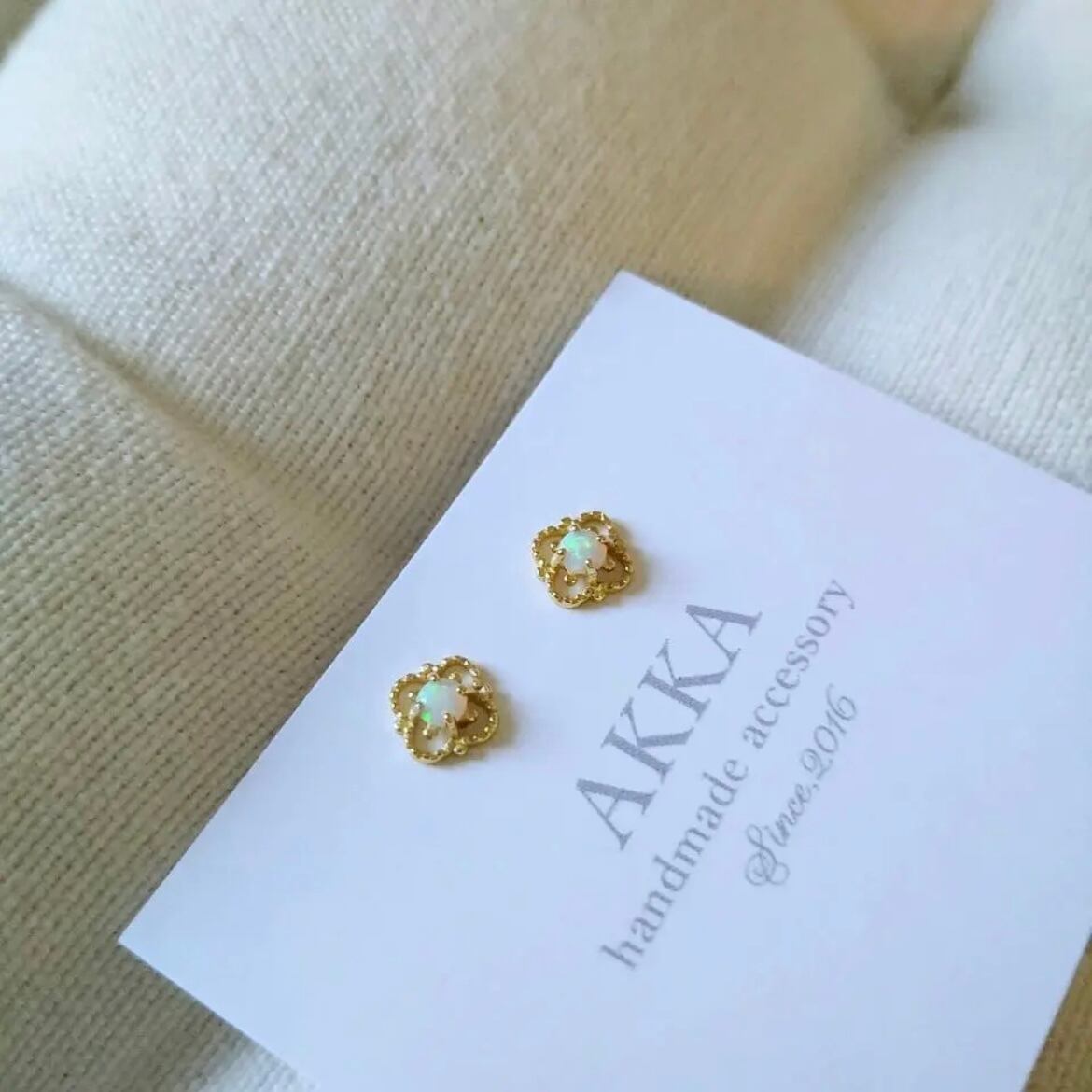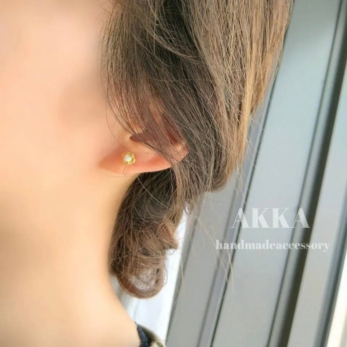 Gold:White opal oriental earring 一粒オパールピアス樹脂イヤリング樹脂ピアス花フラワー