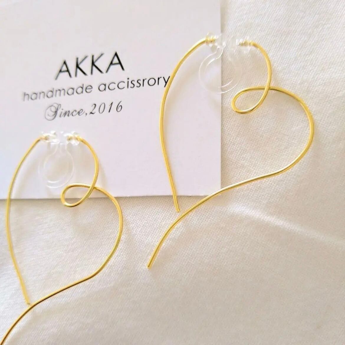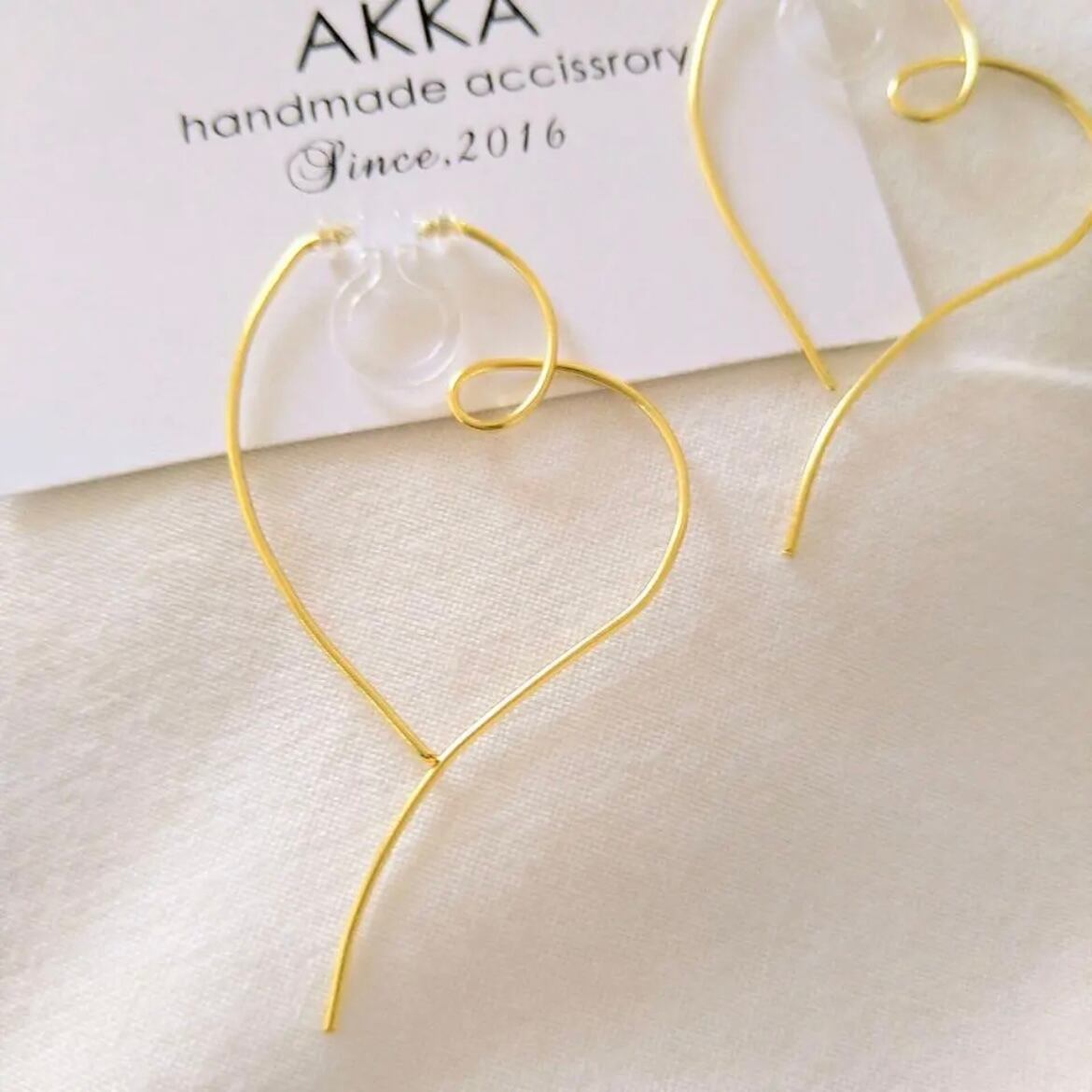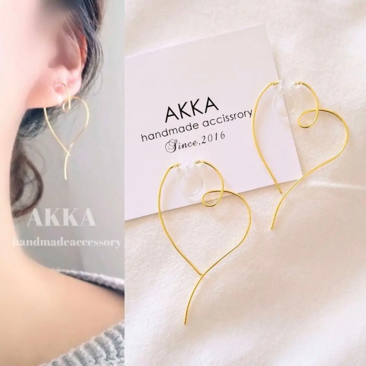 18kgp◆Heart hoop earring ハートの樹脂イヤリング フープイヤリング フープピアス ハートピアス 金属アレルギー