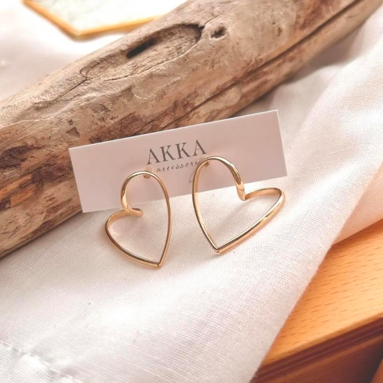 ゆるいハートデザインが可愛らしいフープイヤリングです。各種ピアス対応可能。