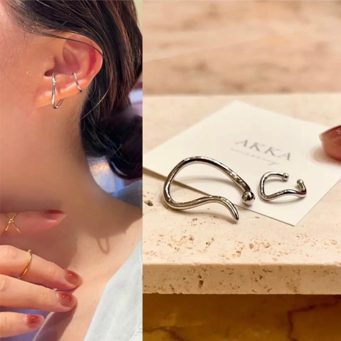 Silver:Wave hoop earcuff 2pac set ウェーブフープイヤーカフ2個セット 大人上品イヤーカーフ小さめ小ぶり個性的フープイヤリングフープピアスお洒落ミニサイズ