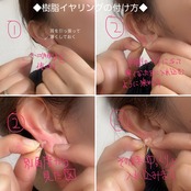 もし耳たぶが厚めの方で少し締め付け感を感じる場合は、挟む部分(樹脂部分)を少しずつ指で広げていき丁度良いところで形状記憶させ付けていただくことでご自分にあったサイズ感をお楽しみいただけます。広げすぎると戻らなくなる場合がございますので、イヤリングを広げる場合は少しずつ慎重に行ってください。
