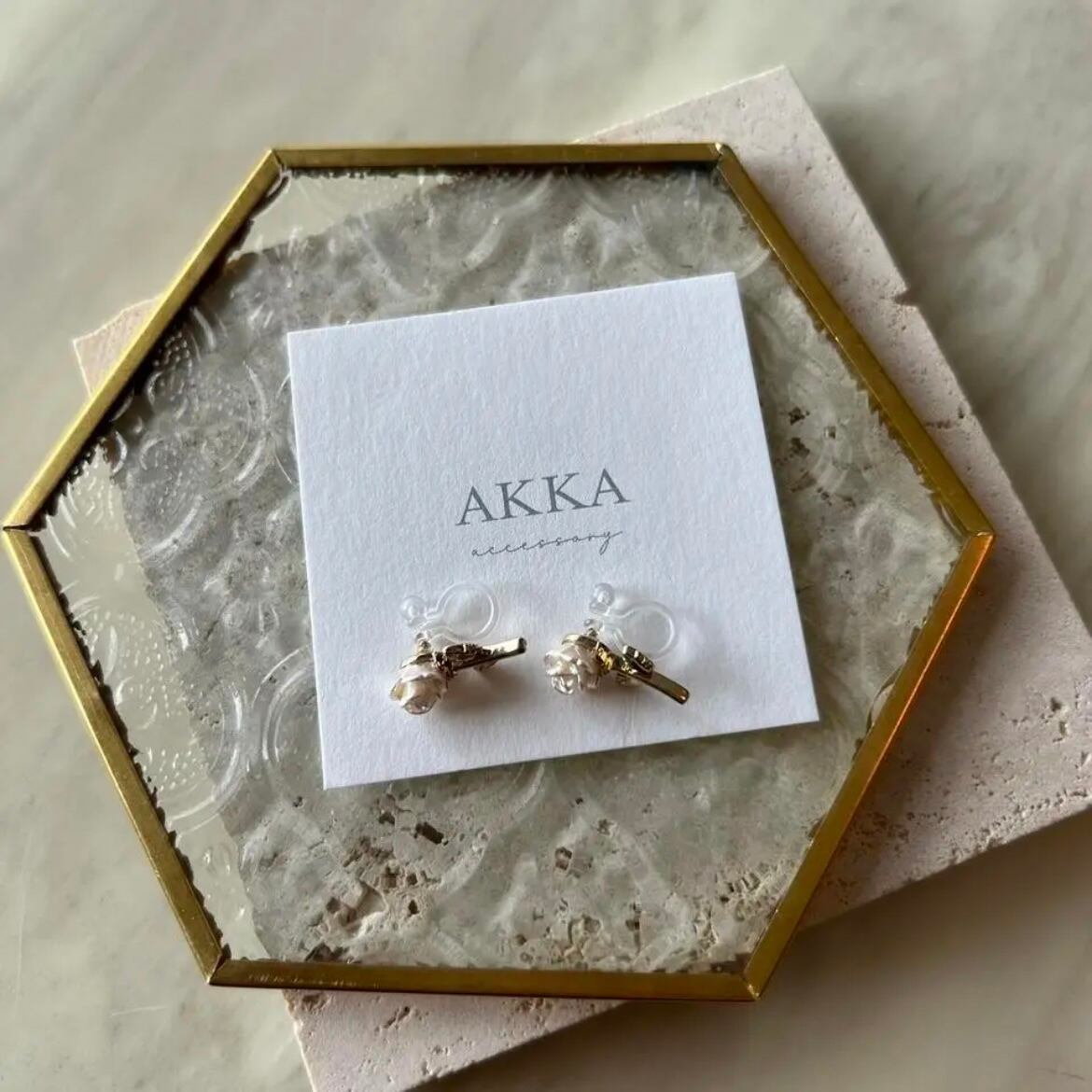 white rose mini earring ホワイトローズのミニイヤリング 小さめ 小ぶり 薔薇 バラ 樹脂イヤリング 上品 大人カジュアル 樹脂ピアス 金属アレルギー 大人可愛い AKKA