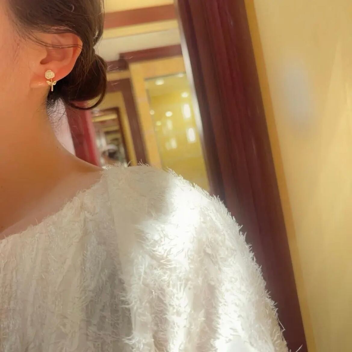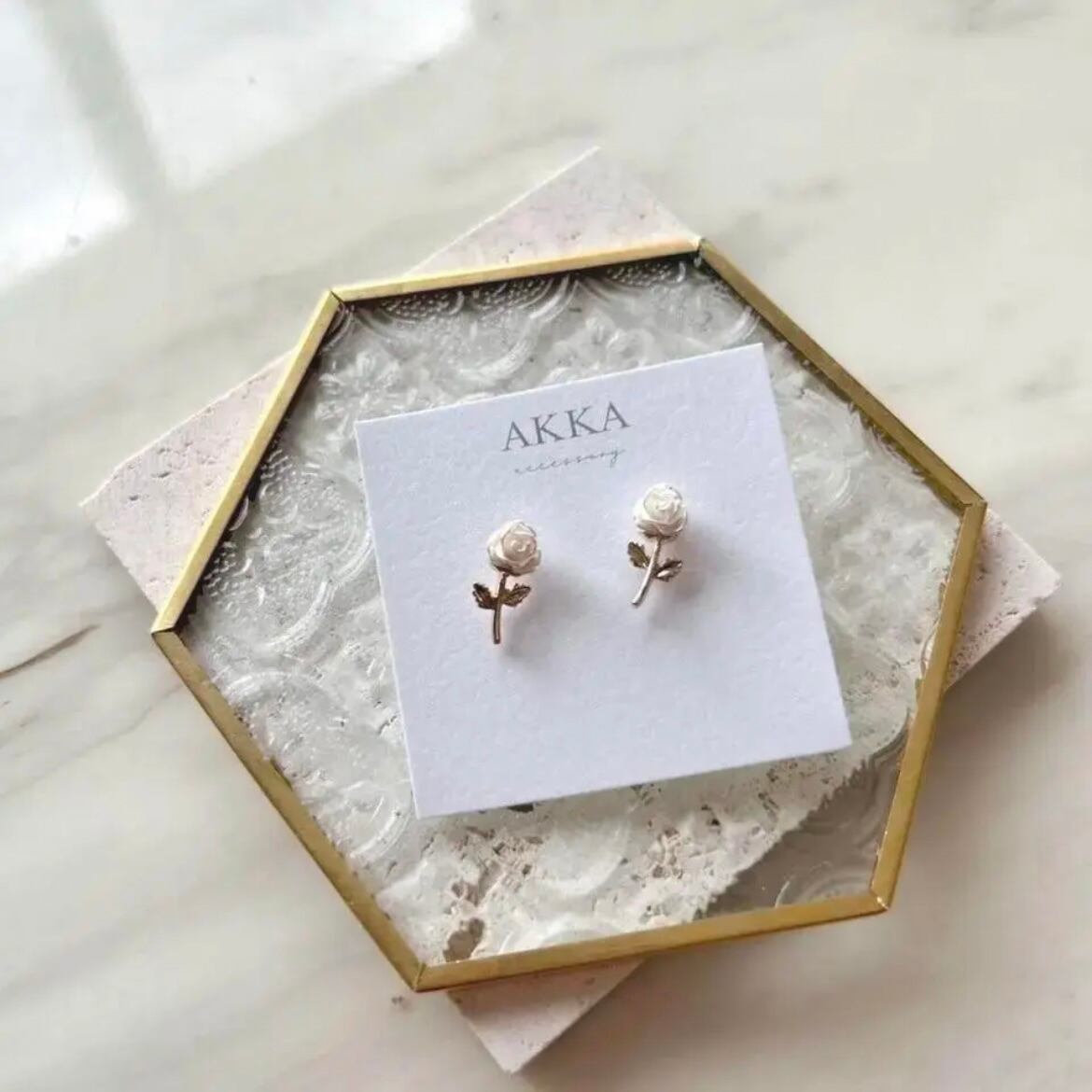 ホワイトローズが大人上品な印象です。小ぶりなサイズ感が上品で、女性らしさを引き立たせてくれます。華やかになりすぎずに、耳元をさりげなく飾ってくれますのでデイリー使いにもちろん、ちょっとしたお出かけや女子会にもおすすめです。