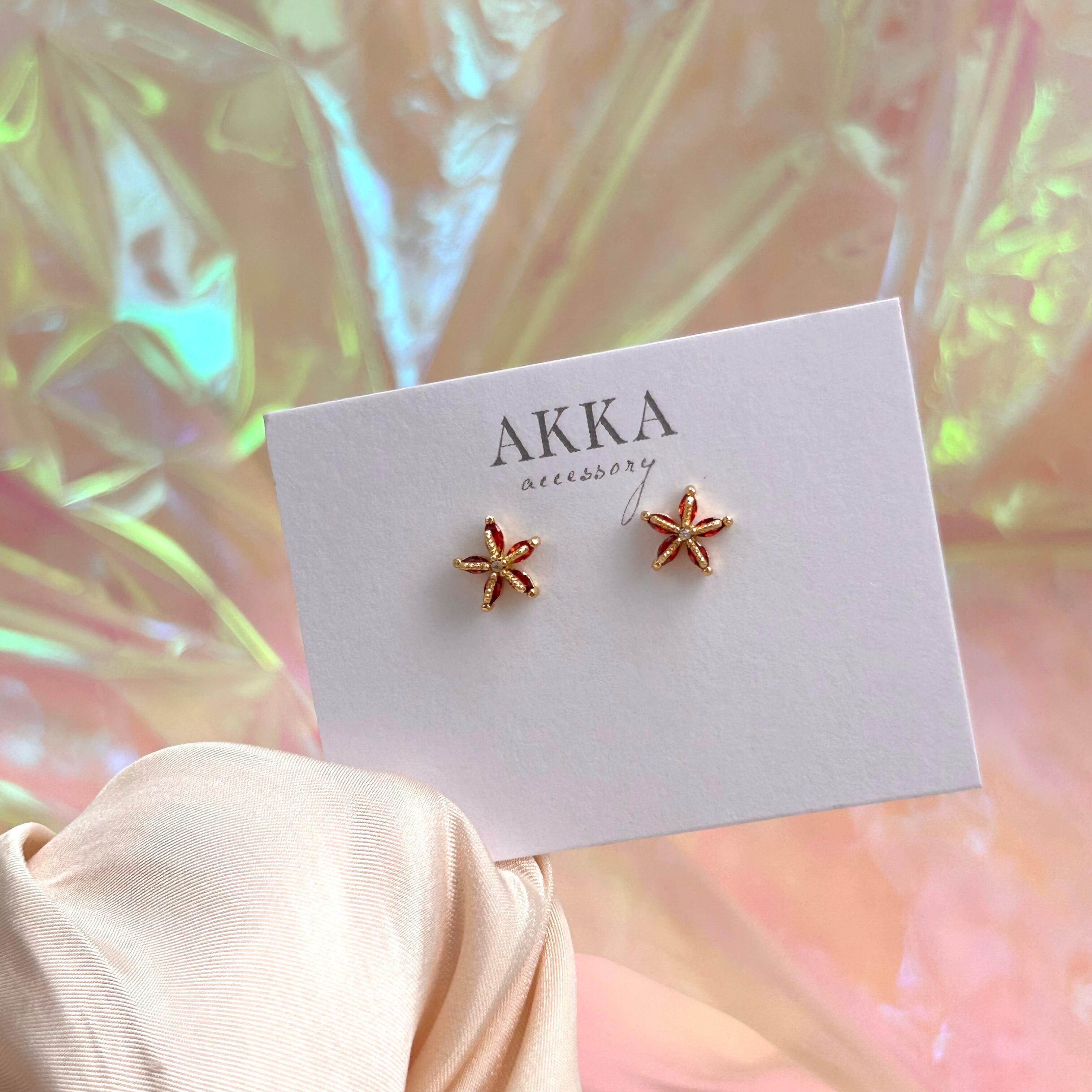 starfish red bijou mini earring ヒトデのミニビジューイヤリング AKKA ピアス 樹脂 イヤリング ヒトデ