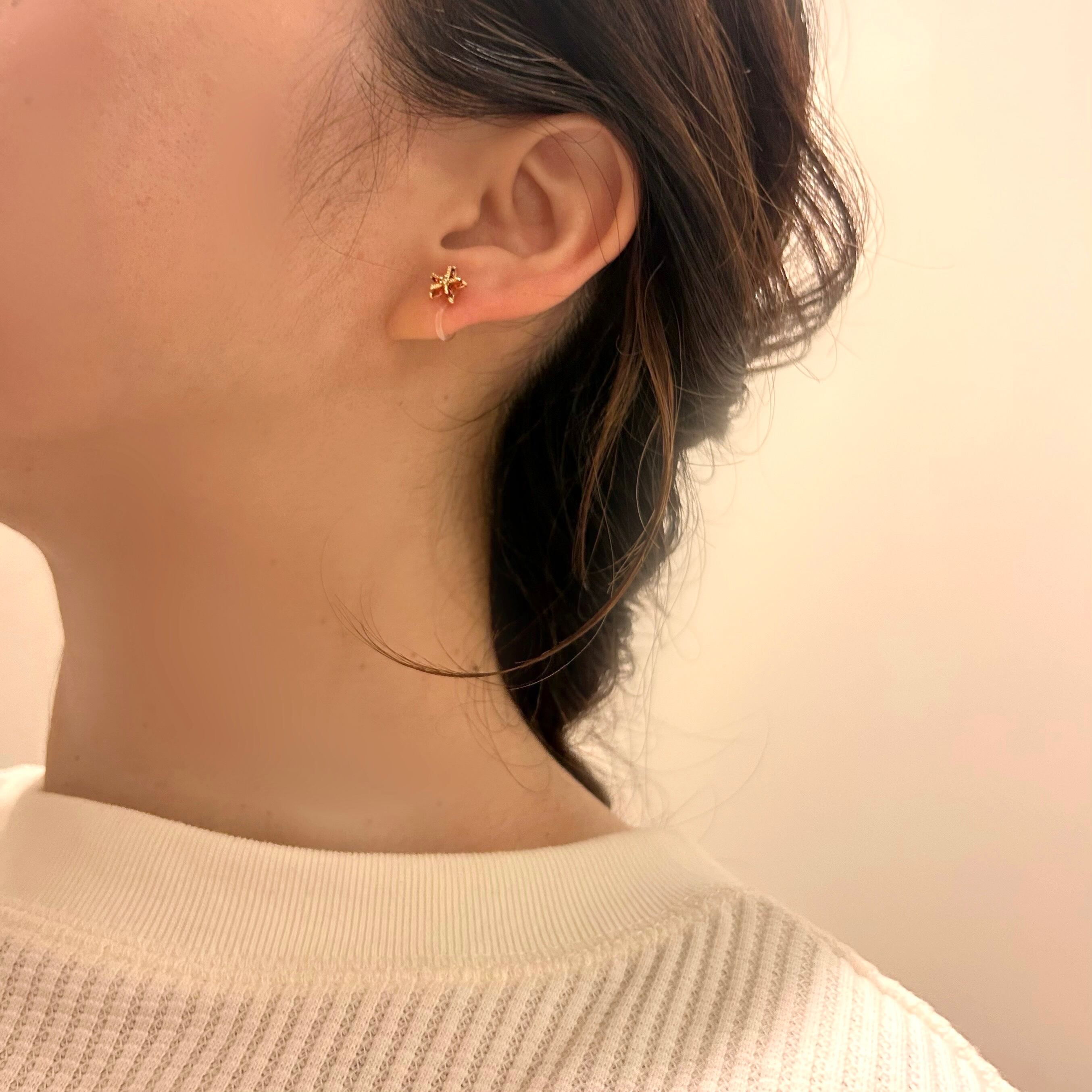 装着すると樹脂部分が肌色になじんでピアスをしているかのような見た目となり耳まわりがもたつかずにスッキリとします。また、ホールド力があるので落ちにくいですが、耳の厚みにフィットしてくれるので痛くなりません。