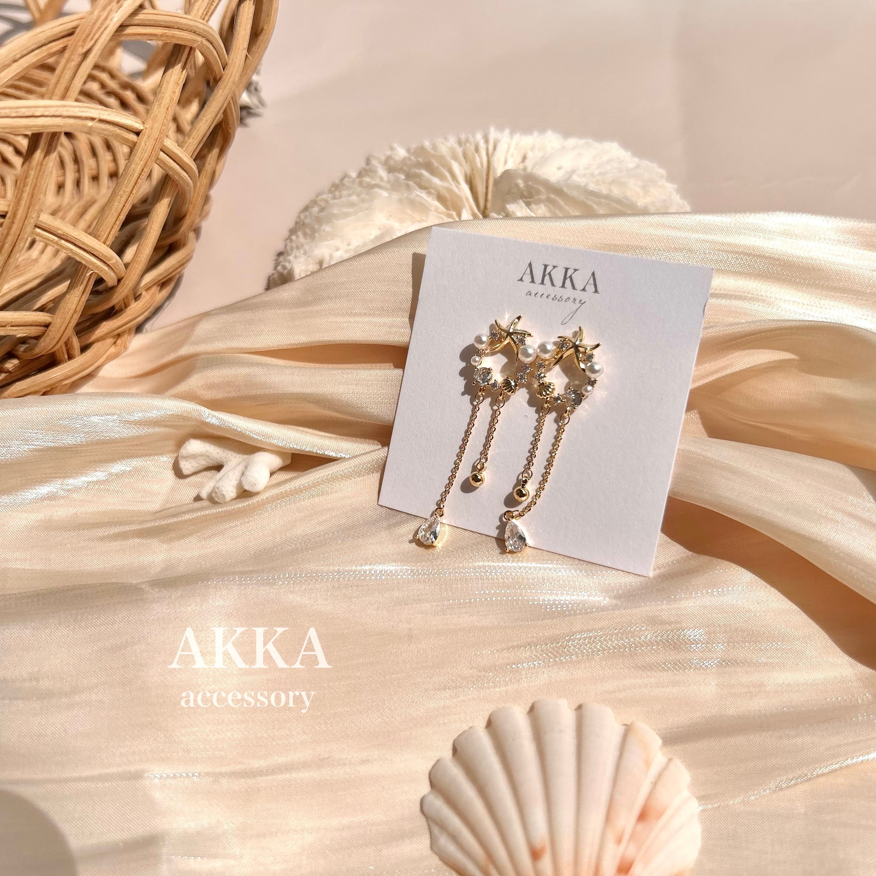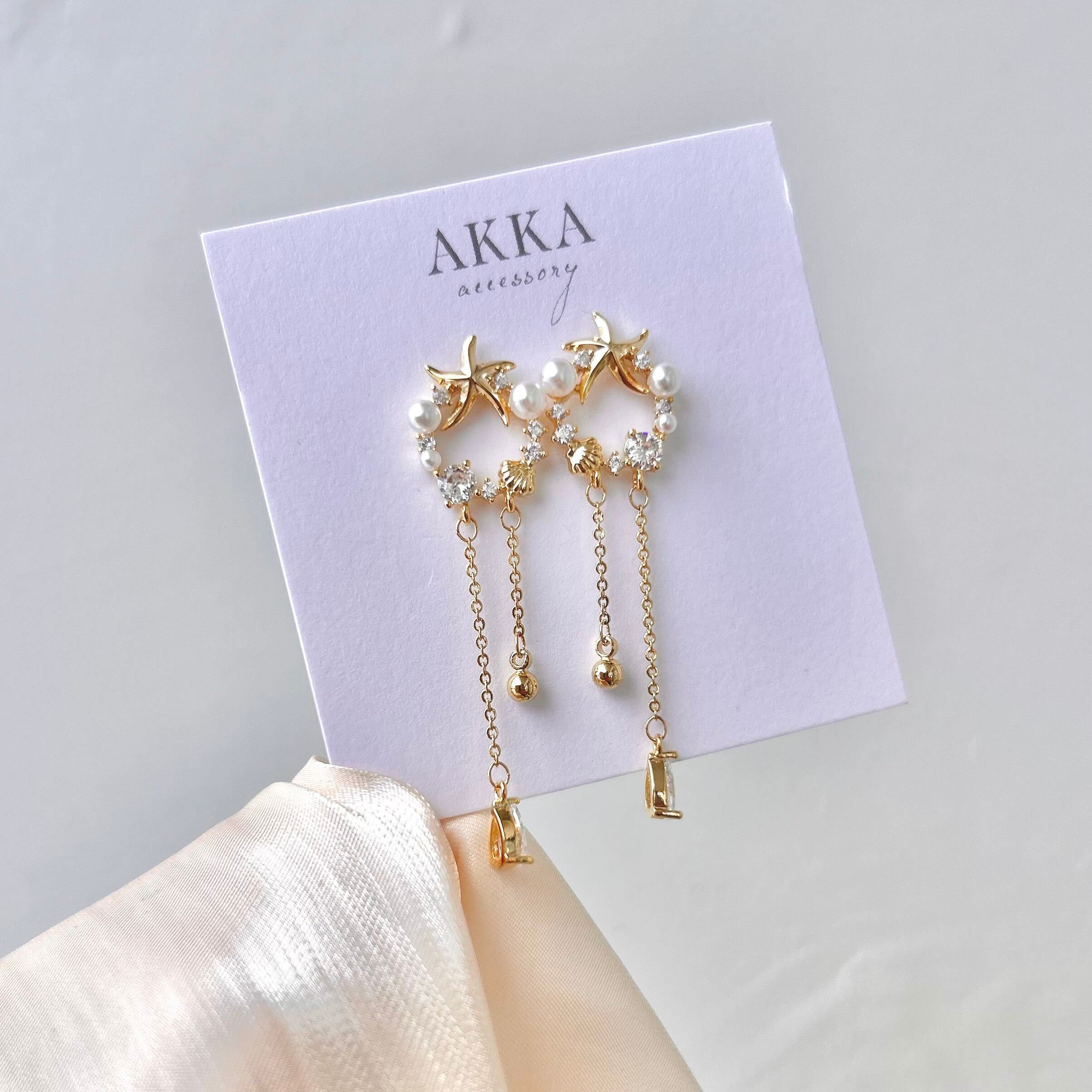 ヒトデ、貝殻、パール、ビジューの可愛い素材をたっぷりと使用した当店オススメのアイテムです。