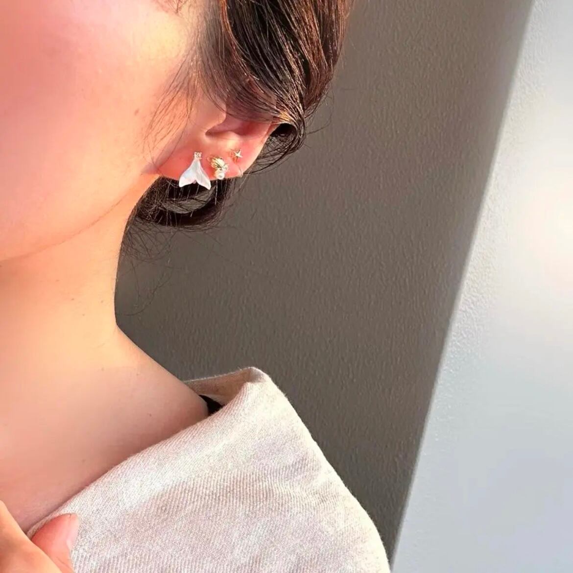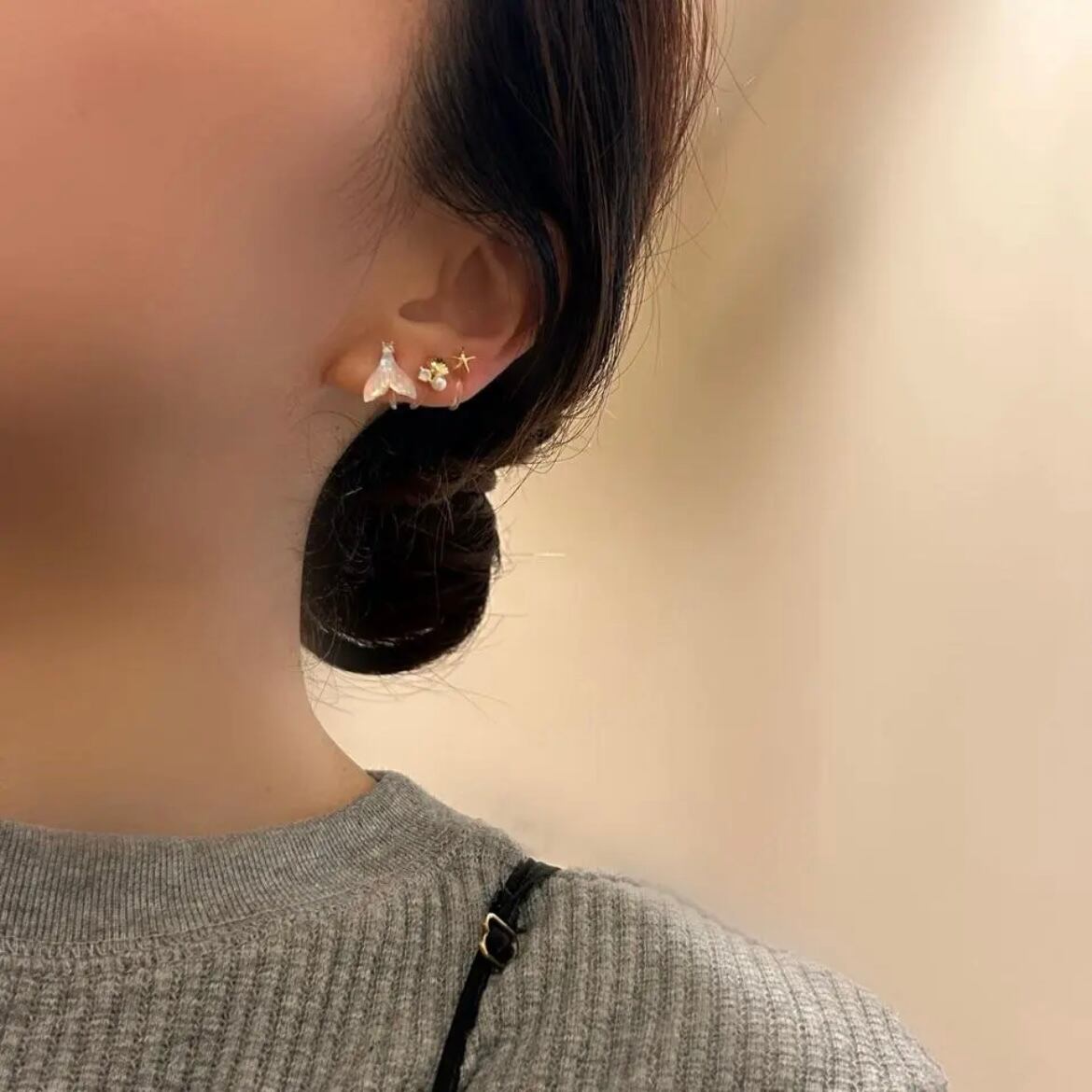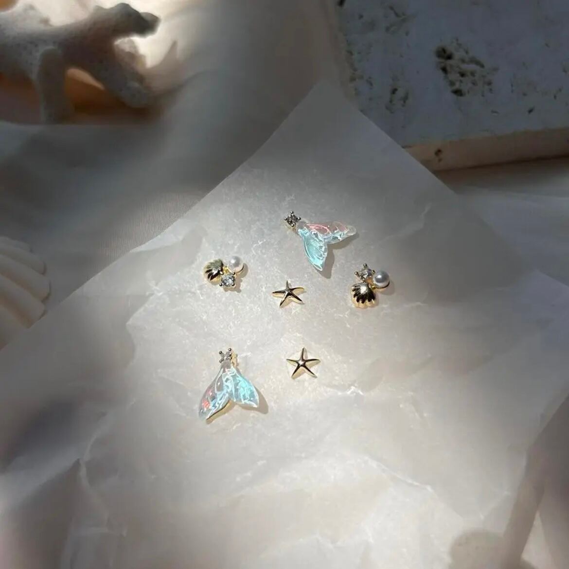 fish tail marine bijou earring 6個セット フィッシュテール ビジュー イヤリング 樹脂ピアス 金属アレルギー 痛くないイヤリング ビジューイヤリング ヒトデ