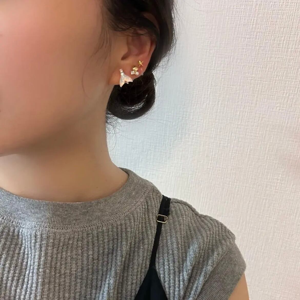 装着すると樹脂部分が肌色になじんでピアスをしているかのような見た目となり耳まわりがもたつかずにスッキリとします。また、ホールド力があるので落ちにくいですが、耳の厚みにフィットしてくれるので痛くなりません。