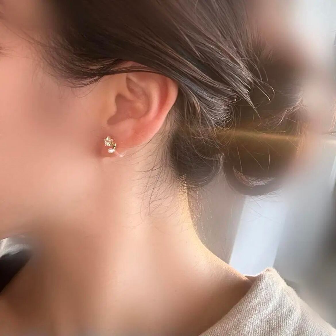 装着すると樹脂部分が肌色になじんでピアスをしているかのような見た目となり耳まわりがもたつかずにスッキリとします。また、ホールド力があるので落ちにくいですが、耳の厚みにフィットしてくれるので痛くなりません。