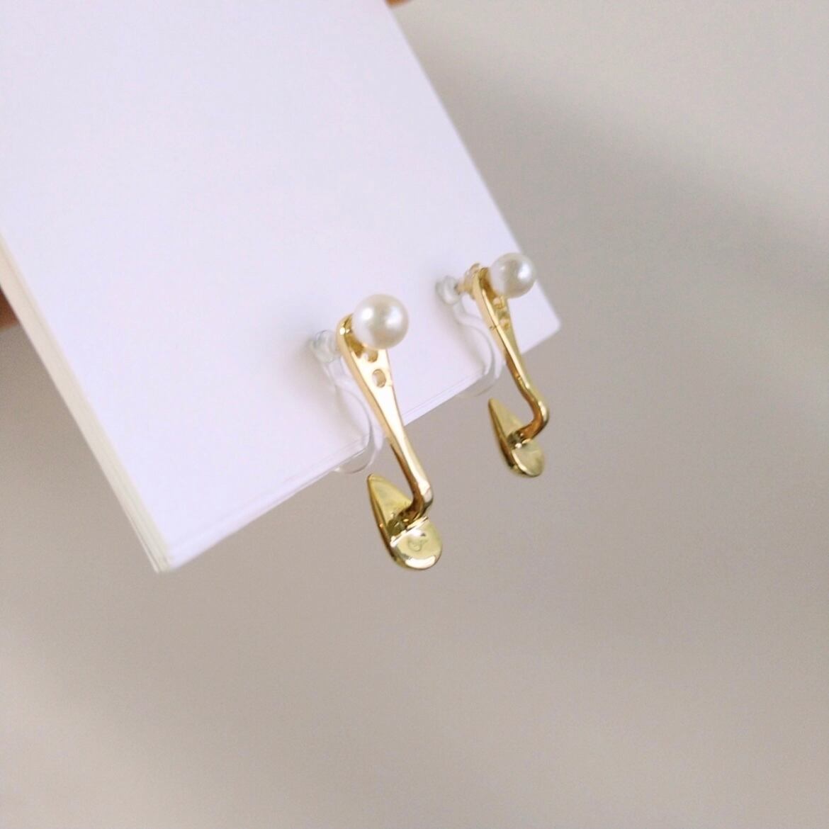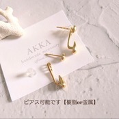 gold motif simple earring ゴールドモチーフのシンプルイヤリング 樹脂ピアスパール樹脂イヤリングノンホールピアス金属アレルギー対応
