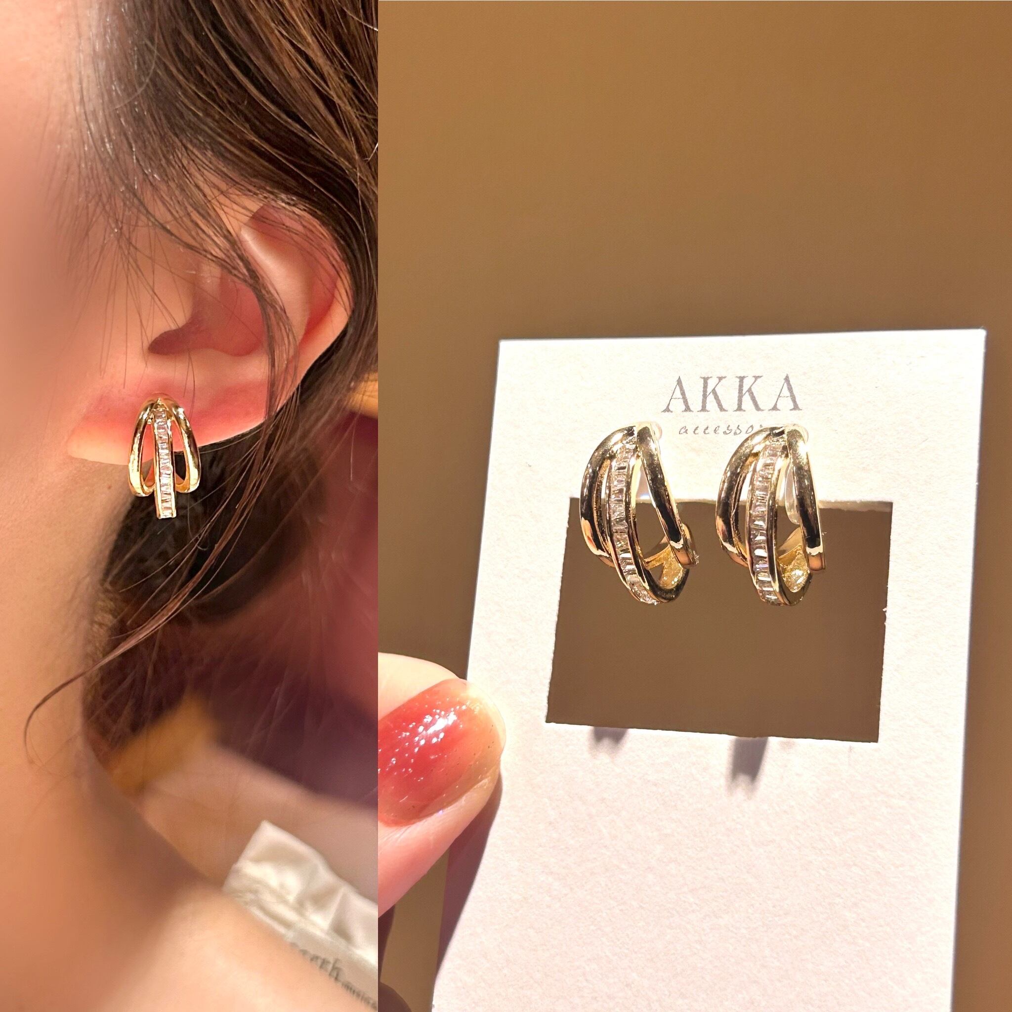 K18gp◆Triple hoop bijou earring フープイヤリング フープピアス フープ ビジュー 樹脂イヤリング 樹脂ピアス 金属アレルギー対応 ノンホールピアス リボンのアクセサリー 大人可愛い 結婚式 高見え 上品 AKKAビジュー イヤリング キラキラ 結婚式 きれいめ 可愛い 高見え 人気 ギフト 誕生日 フェミニン ボリューム AKKA