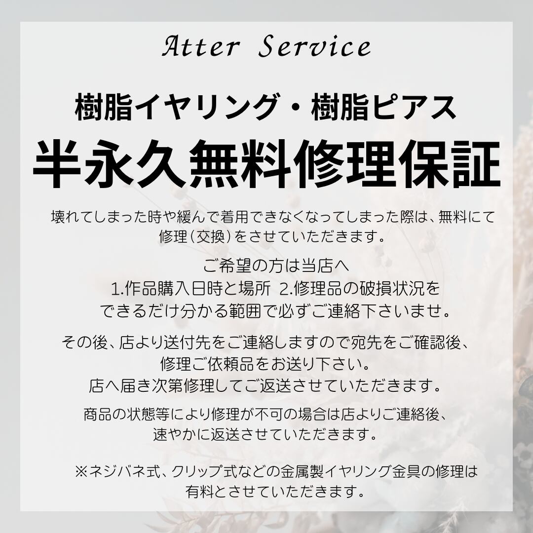 ◎アフターサービスにて樹脂イヤリング、樹脂ピアスの修理無料(当店お取り扱いのもの限定)