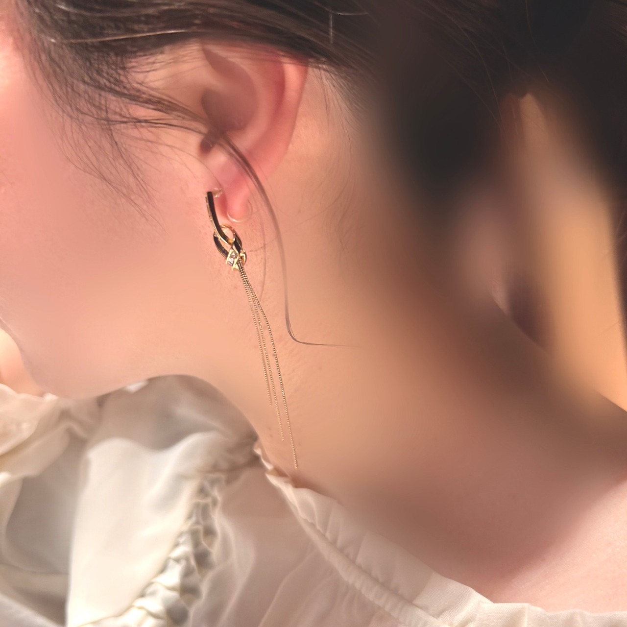 装着すると樹脂部分が肌色になじんでピアスをしているかのような見た目となります為、耳まわりがもたつかずにスッキリとします。