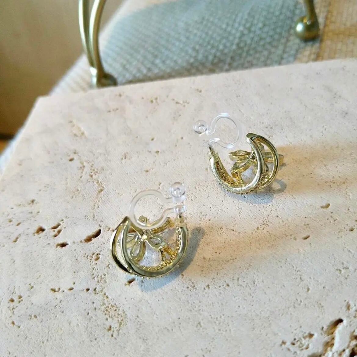 樹脂イヤリングはホールド力があるので落ちにくいですが、耳の厚みにフィットするので痛くなりません。