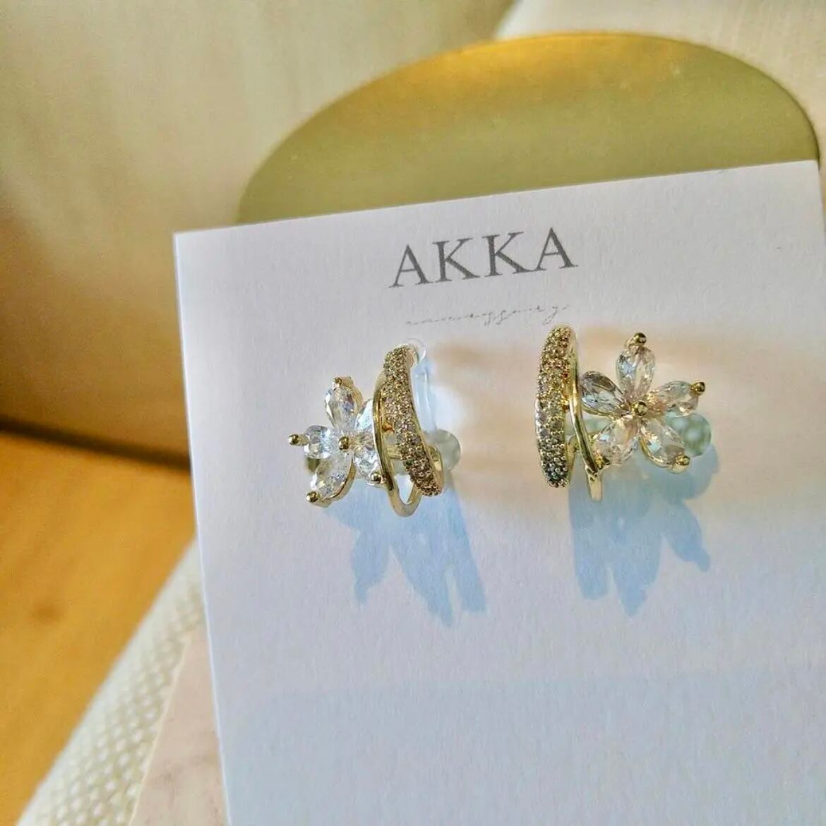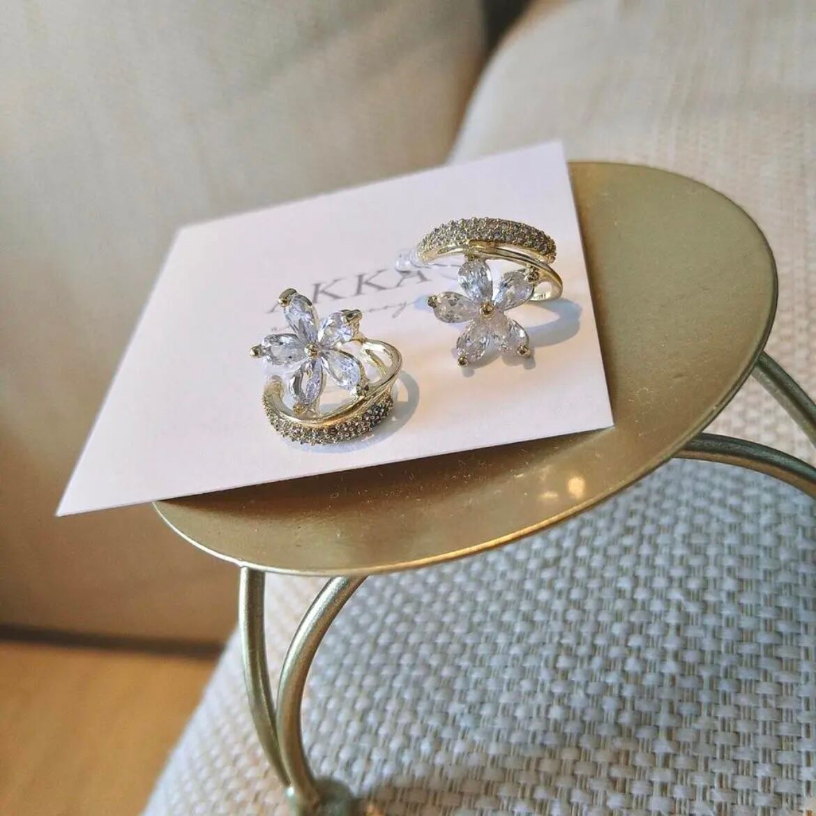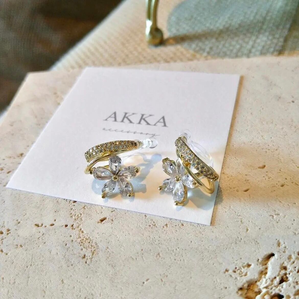 Flower hoop bijou earrings フラワーフープイヤリングビジューピアスに見える痛くないアレルギーノンホールイヤーカフ可愛い花ジルコニア大人上品
