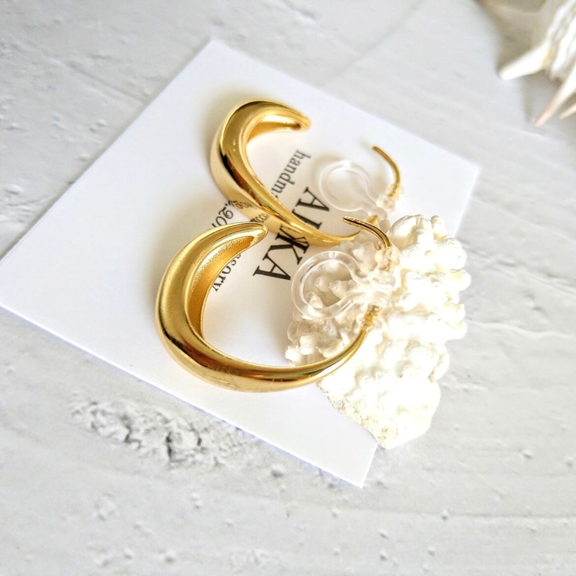 Gold hoop earring ゴールド フープイヤリング フープピアス 樹脂イヤリング 金属アレルギー