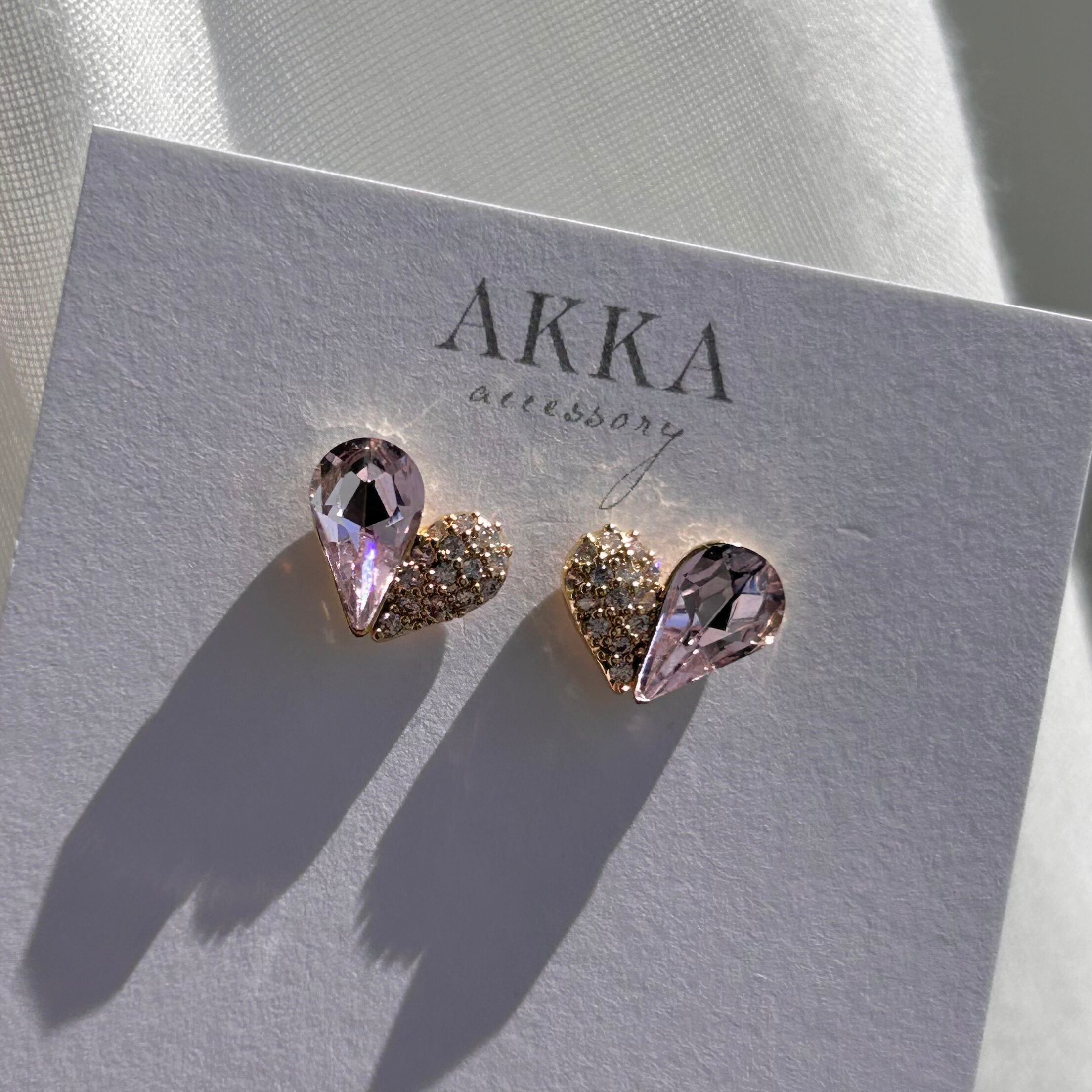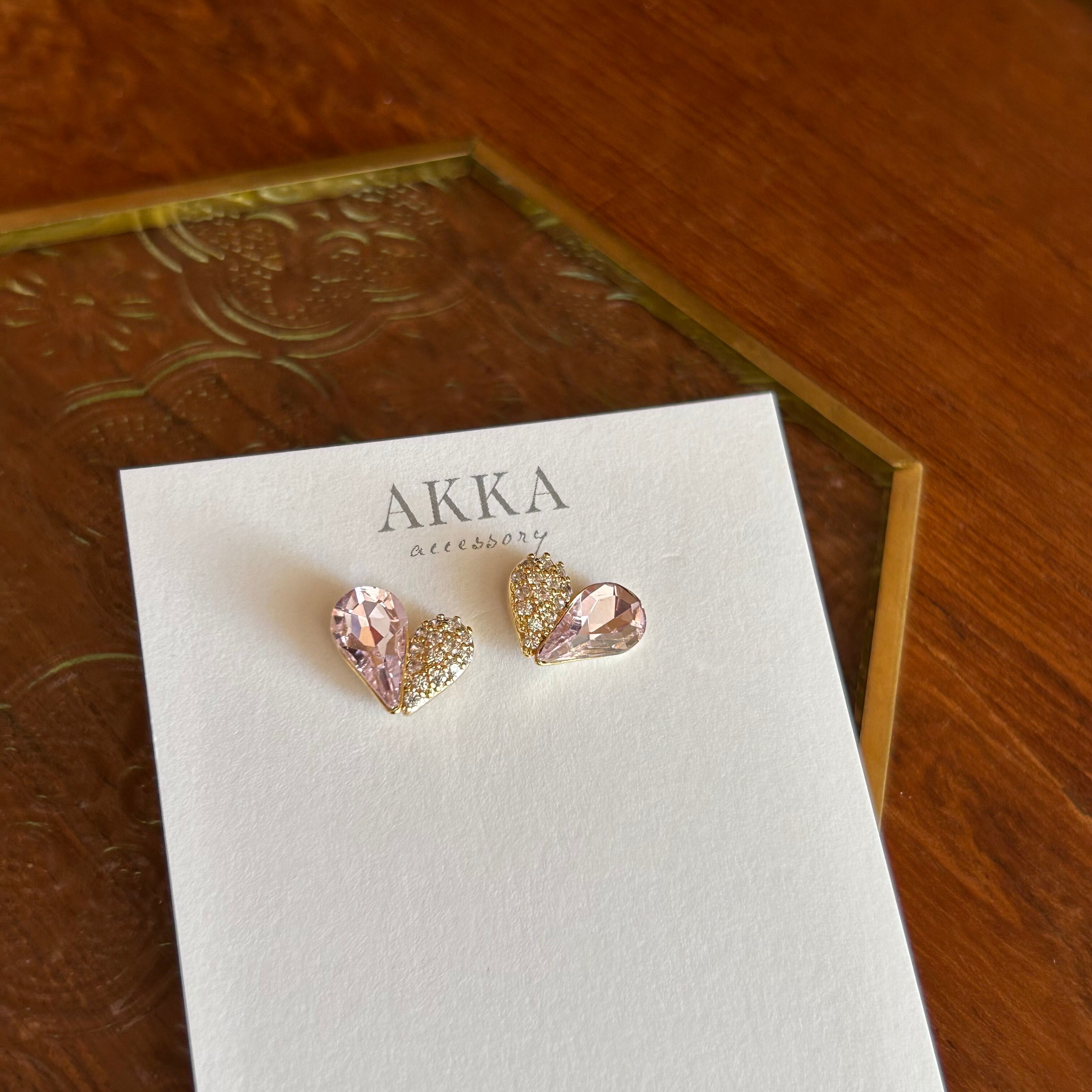 Pink heart bijou earring ピンク ハート 一粒 イヤリング 樹脂イヤリング 樹脂ピアス 樹脂 ノンホールピアス 金属アレルギー ラインストーン 可愛い 小さめ ピアスに見える