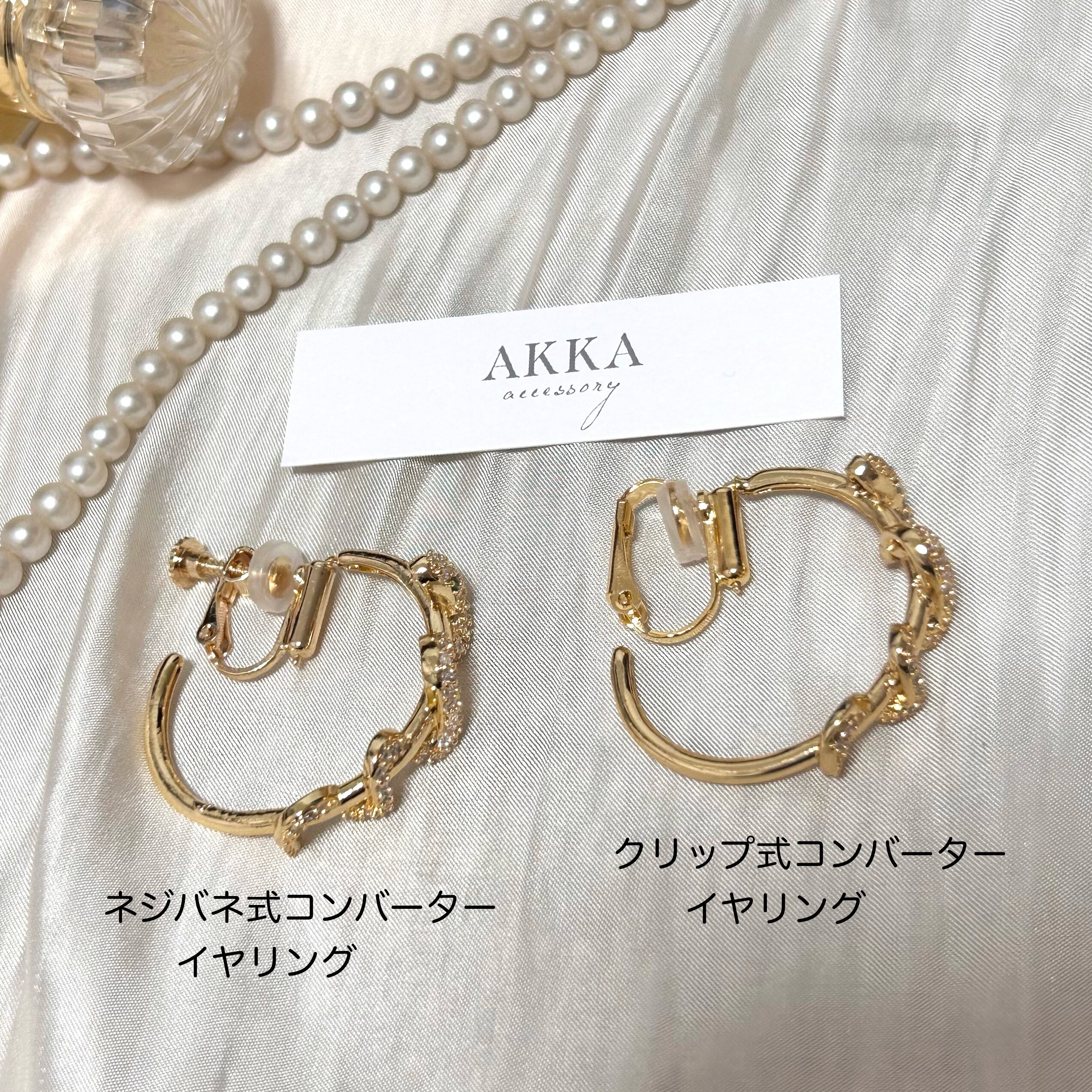 ネジバネ式、クリップ式の金属製イヤリングや、ピアス(金属ポストorクリアチューブ付き金属ポスト)に変更可能です。