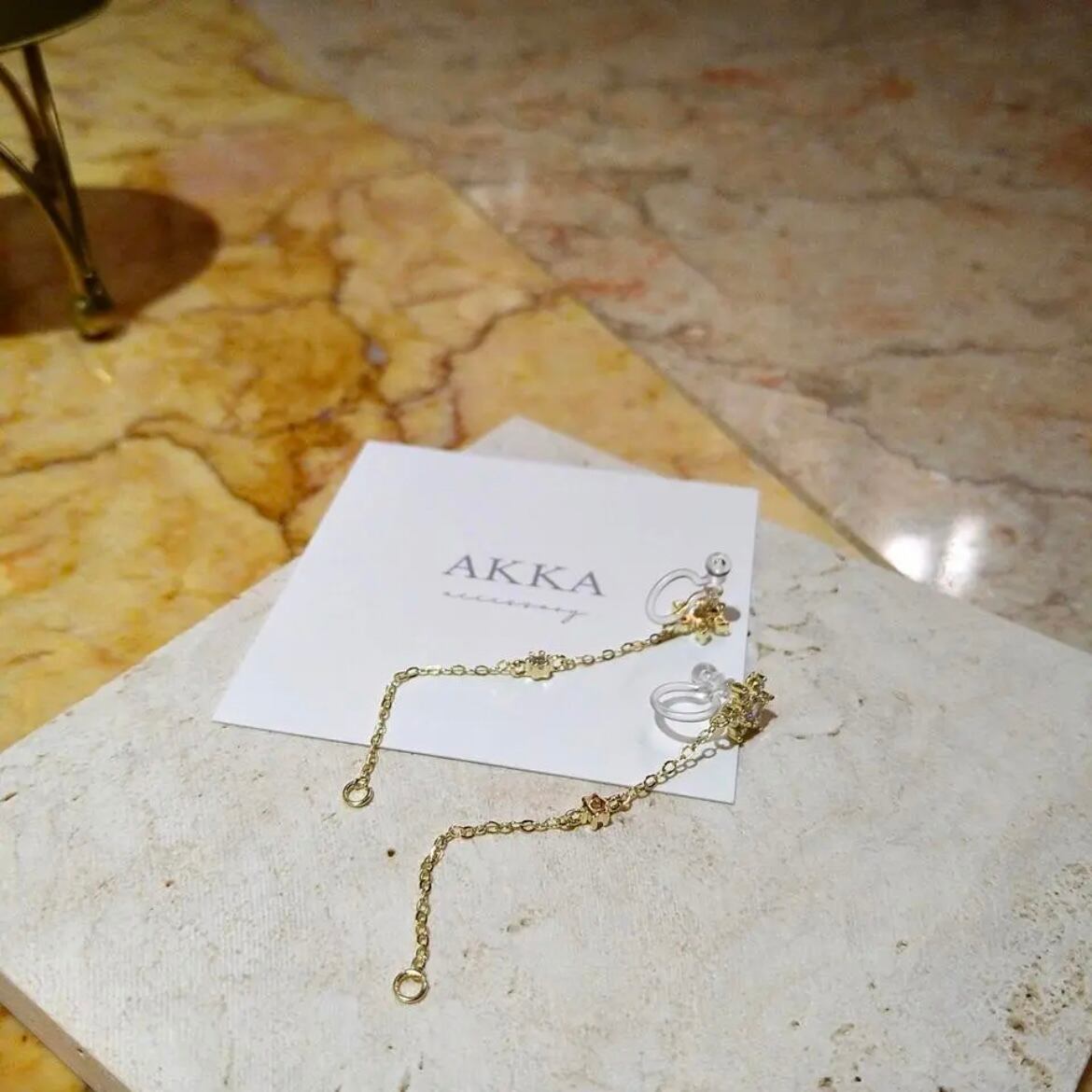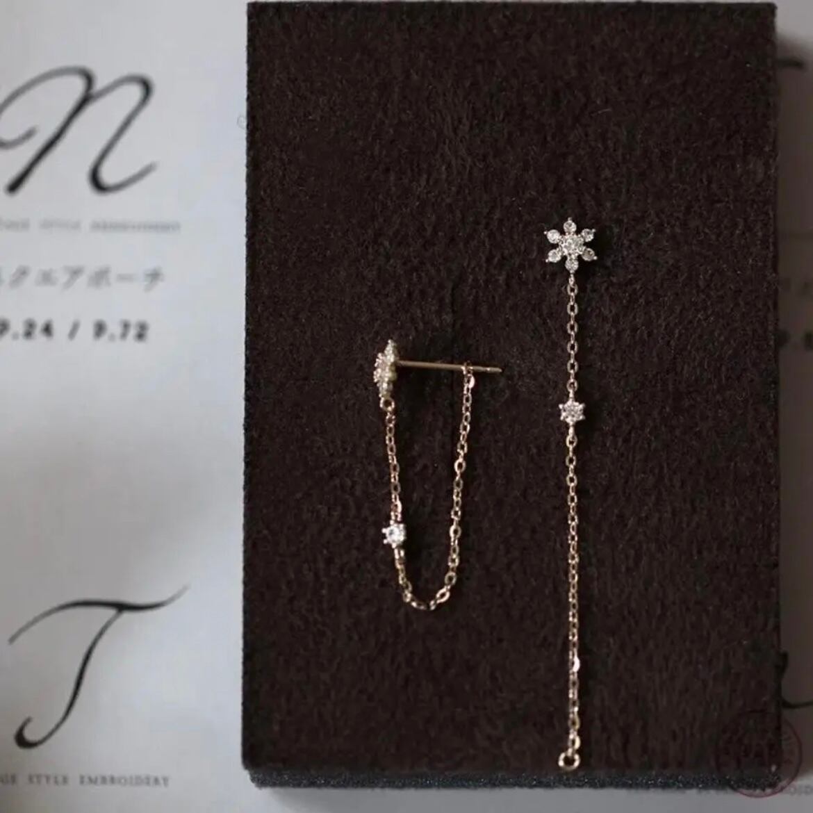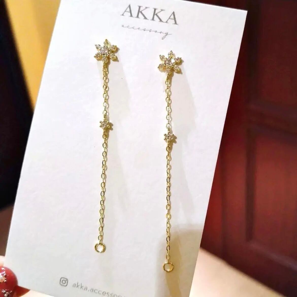 18kgp◆Flower long chain simple earring フラワーシンプルチェーンイヤリング お花 上品 大人 ビジュー ジルコニア ゴールド 普段使い 痛くない 揺れる