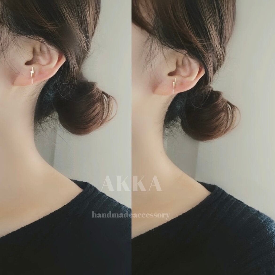 18 kgp◆Thunder earring イナズマの一粒イヤリング① 一粒ピアス 樹脂イヤリング 樹脂ピアス 金属アレルギー ノンホールピアス 雷 サンダー 稲妻 カミナリ シルバー925