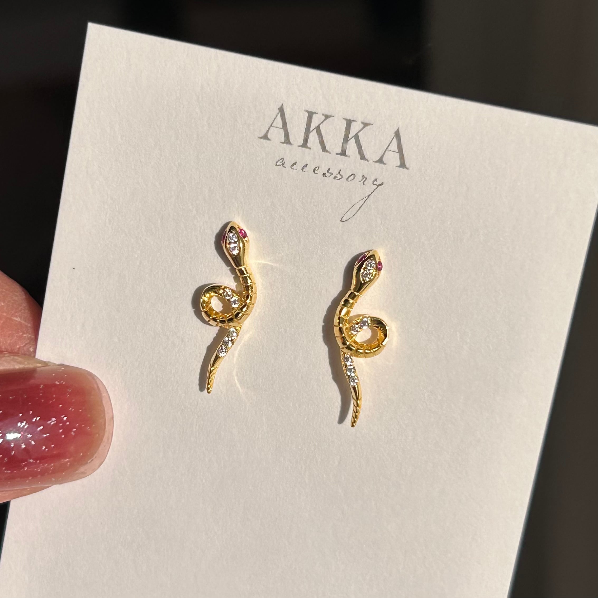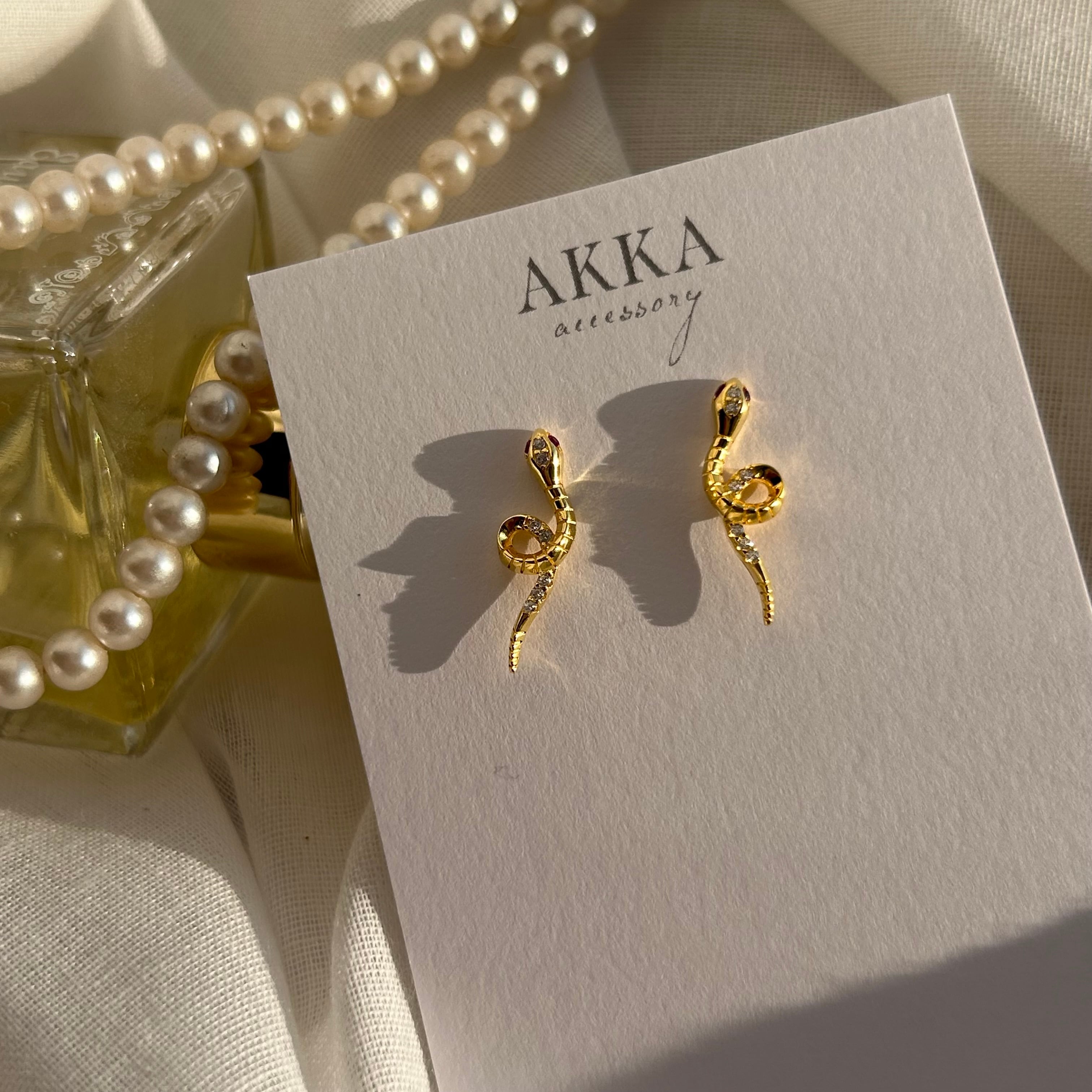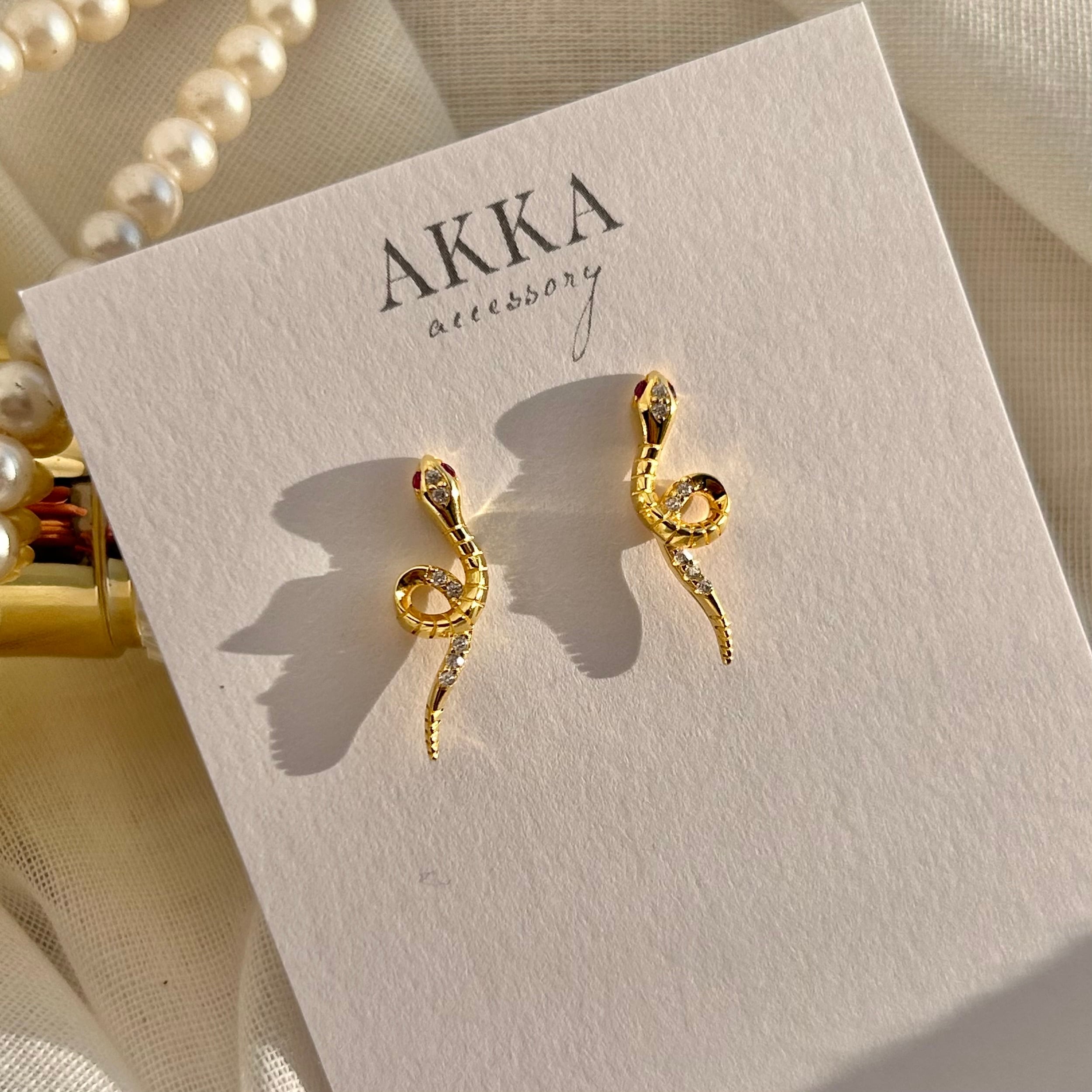 Snake bijou earring ヘビ スネーク ビジュー イヤリング フープイヤリング フープピアス 樹脂 金属アレルギー ノンホールピアス 個性的 蛇 ピアス お洒落 上品 AKKA