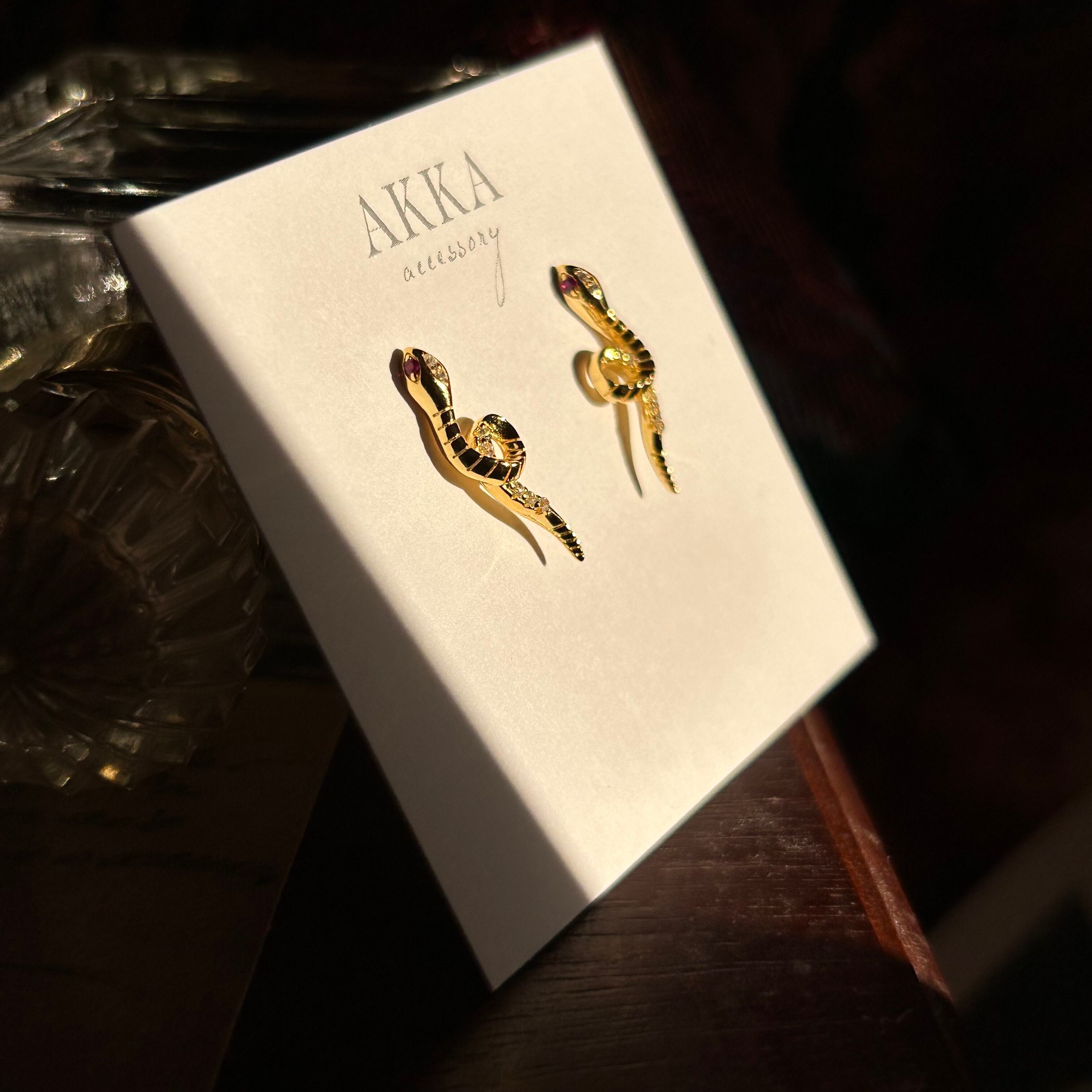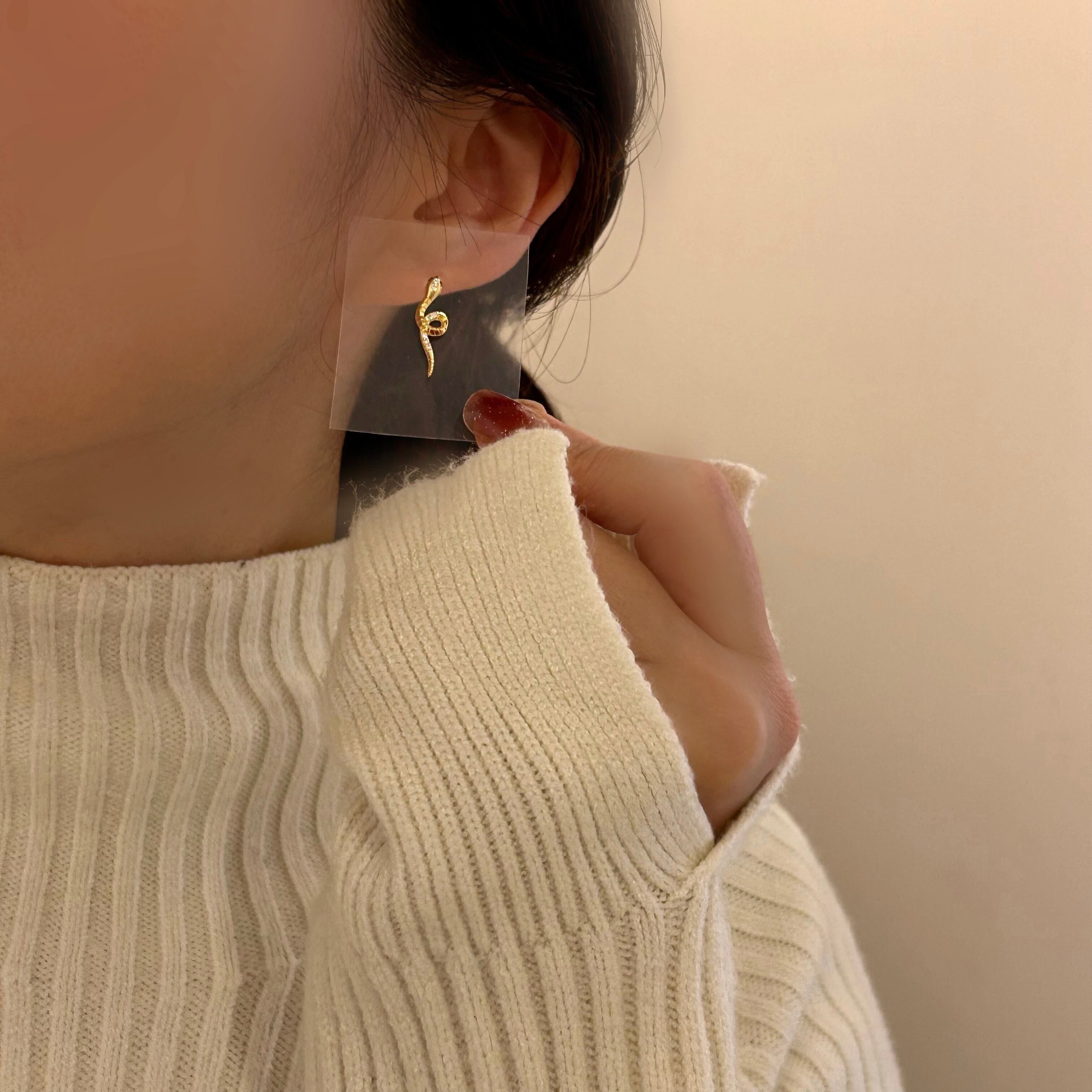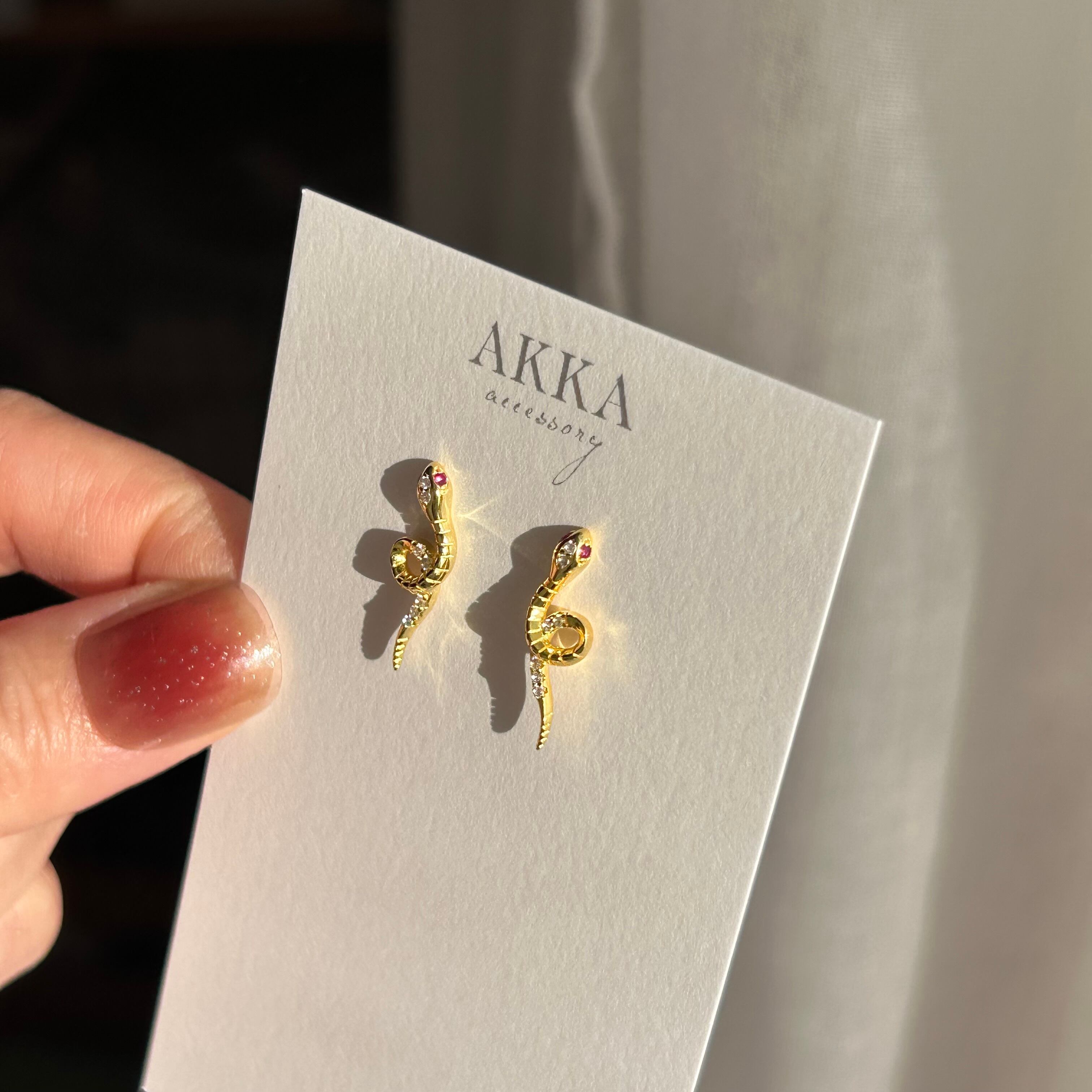 Snake bijou earring ヘビ スネーク ビジュー イヤリング フープイヤリング フープピアス 樹脂 金属アレルギー ノンホールピアス 個性的 蛇 ピアス お洒落 上品 AKKA