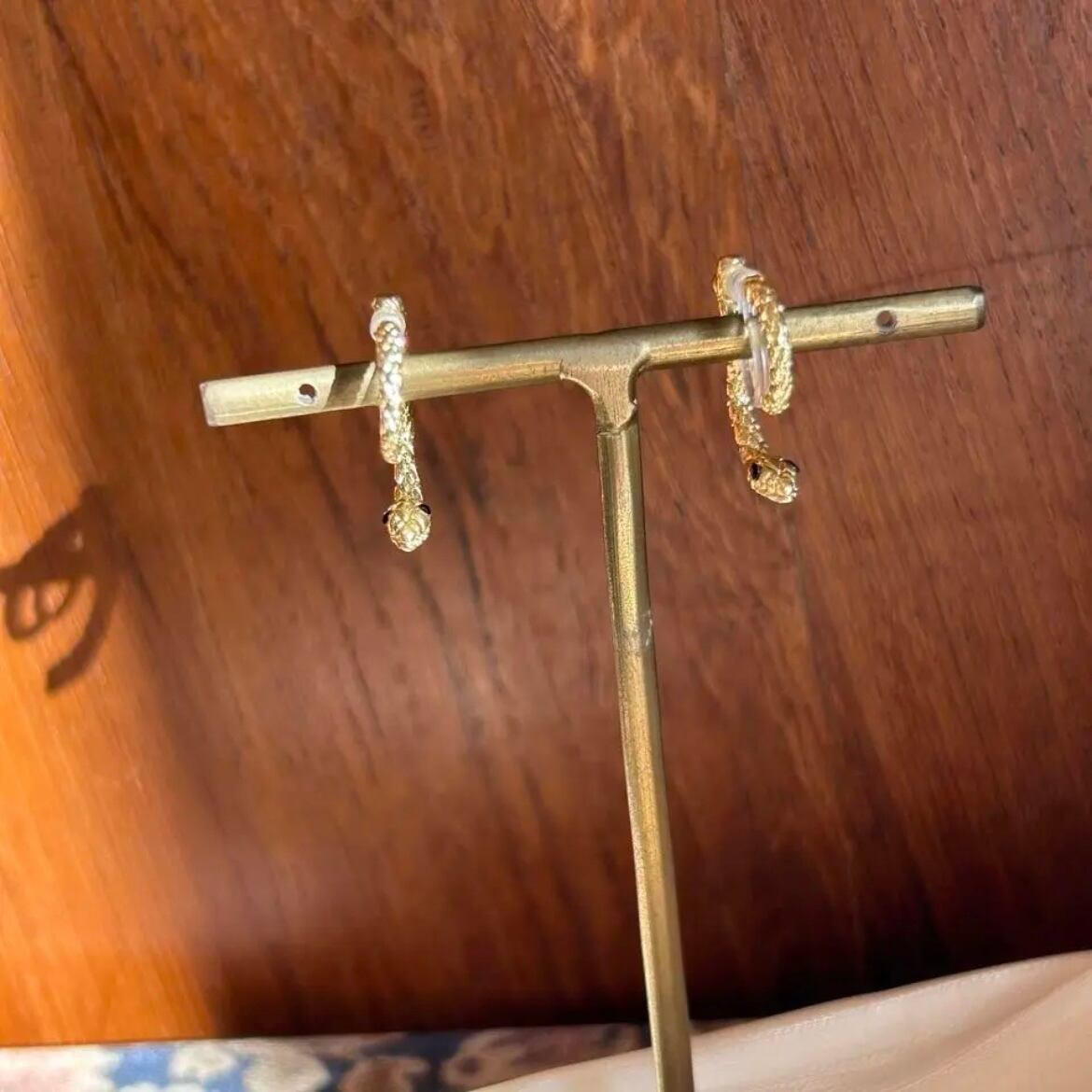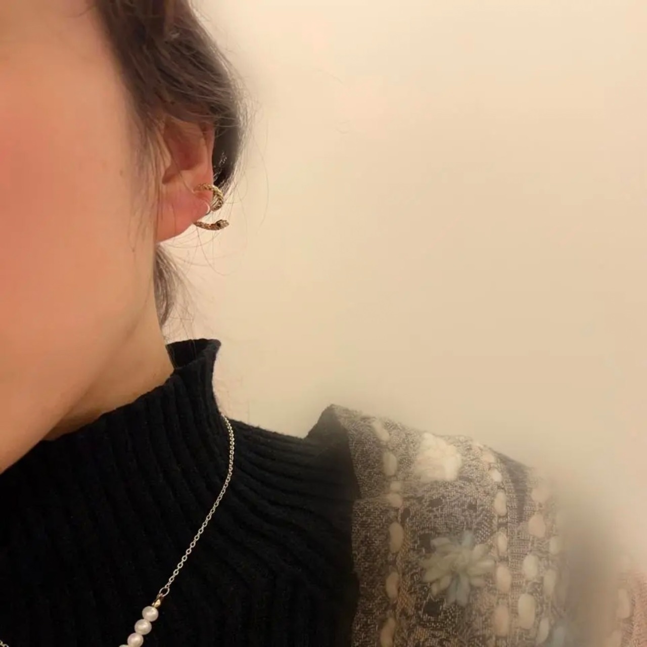 蛇が耳に巻き付いているような不思議なデザインが個性的でおしゃれです。目には極小の黒色キュービックジルコニアが埋め込まれており、細部にまで凝った作りとなっております。ヘビの背中側と腹側の表面の模様も違っており、(アミアミ・シマシマ)繊細で存在感のあるものとなっております。