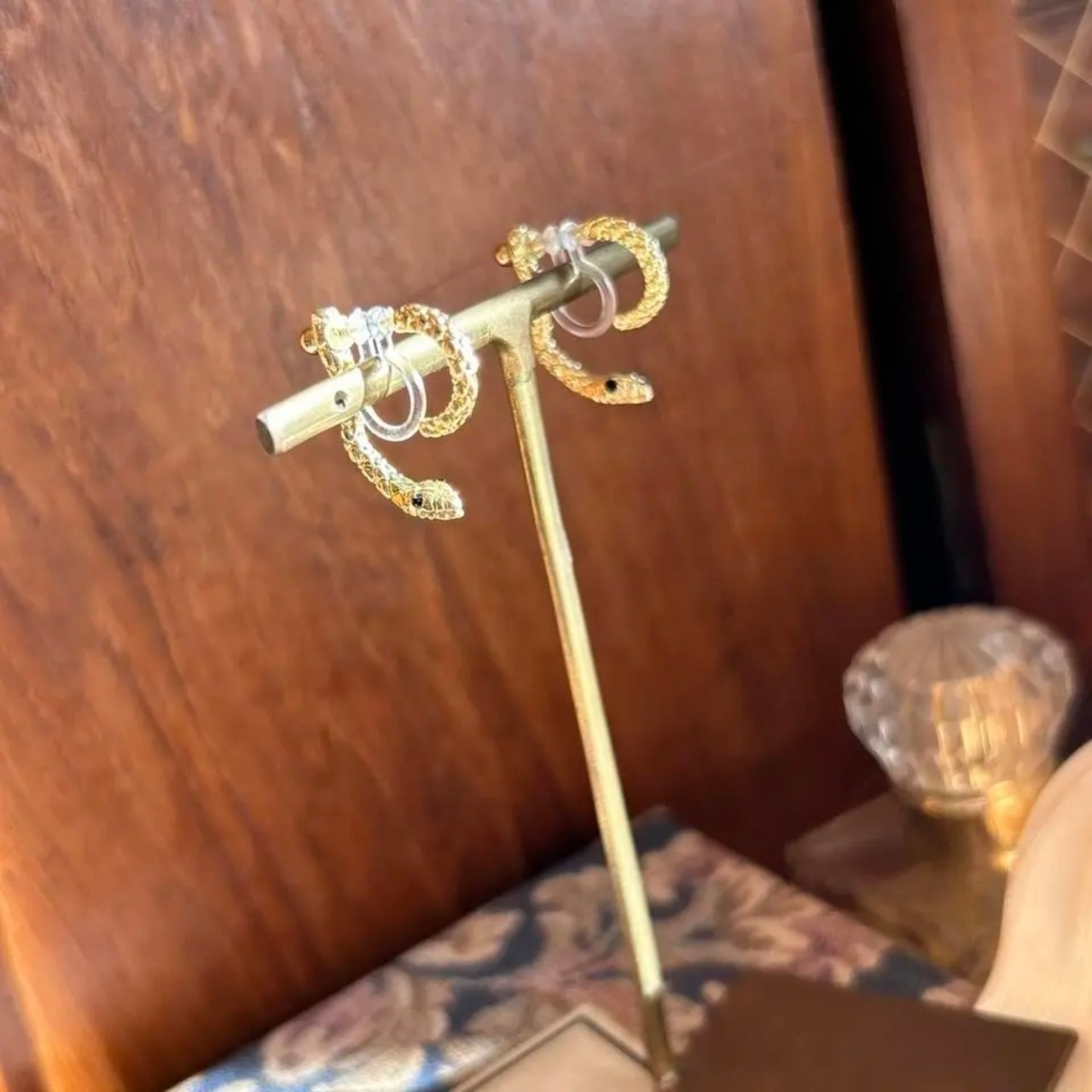 金属アレルギー 痛くない ノンホールイヤリング 大ぶりイヤリング 大ぶりピアス お洒落 煌めく デイリー パーティー アンティーク フェミニン カジュアル 上品 シンプル 女子会 ゴールド 樹脂ノンホール ピアス ピアス金具 アレルギー対応 シンプルピアス シンプルイヤリング ピアスに見える AKKA 華やか ヴィンテージ 蛇 ヘビのイヤリング ヘビのピアス