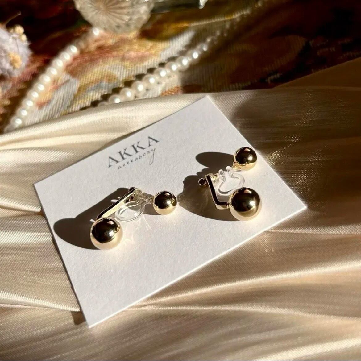 18kgp◆Gold ball earrings ゴールド ボール イヤリング ピアス ノンホールピアス ノンホールイヤリング シンプル 樹脂ピアス 樹脂イヤリング 金属アレルギー 痛くない
