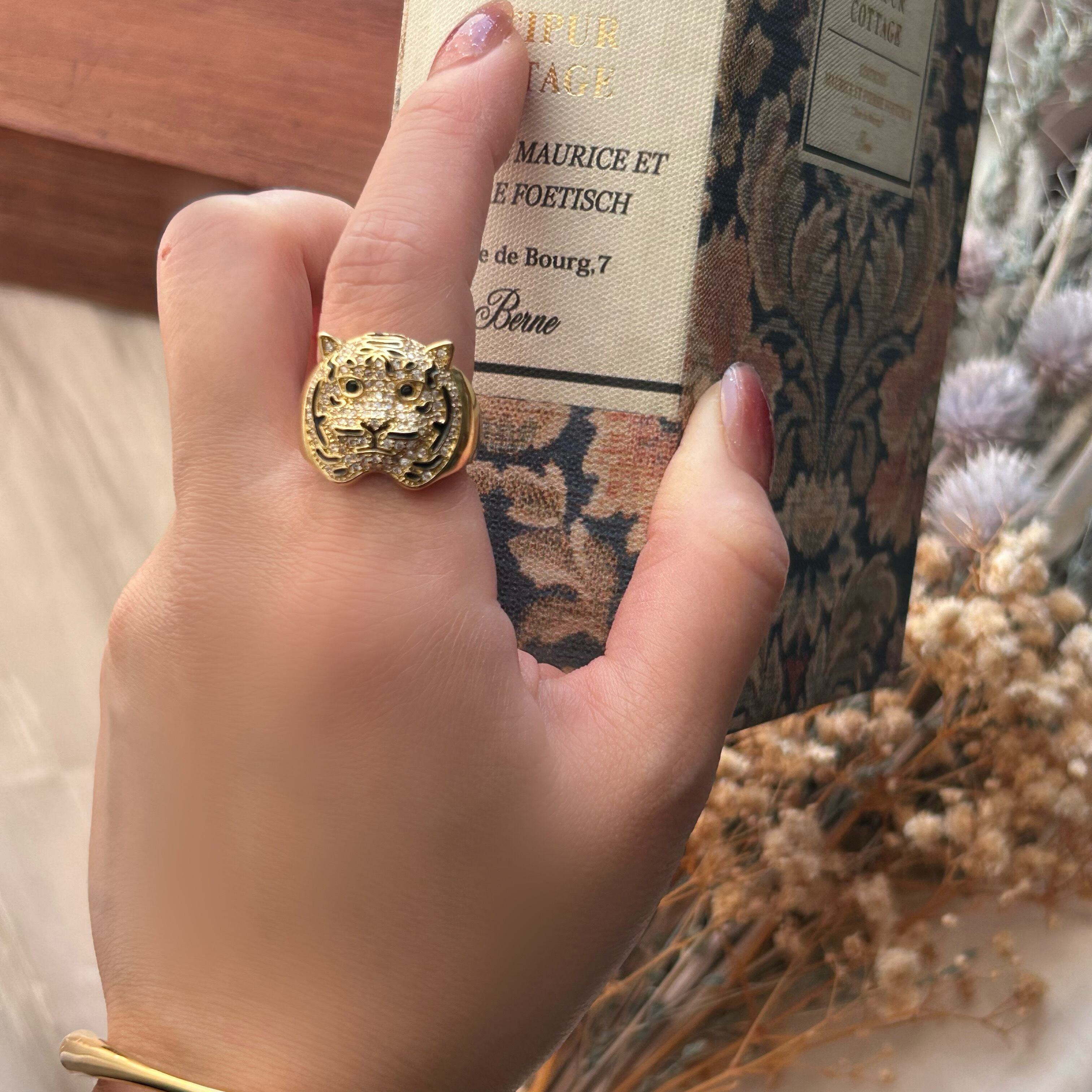 Tiger bijou vintage like chunk ring タイガー トラ チャンク 指輪 チャンキー ビジュー ヴィンテージライク 新品 虎 大きめ ごつめ