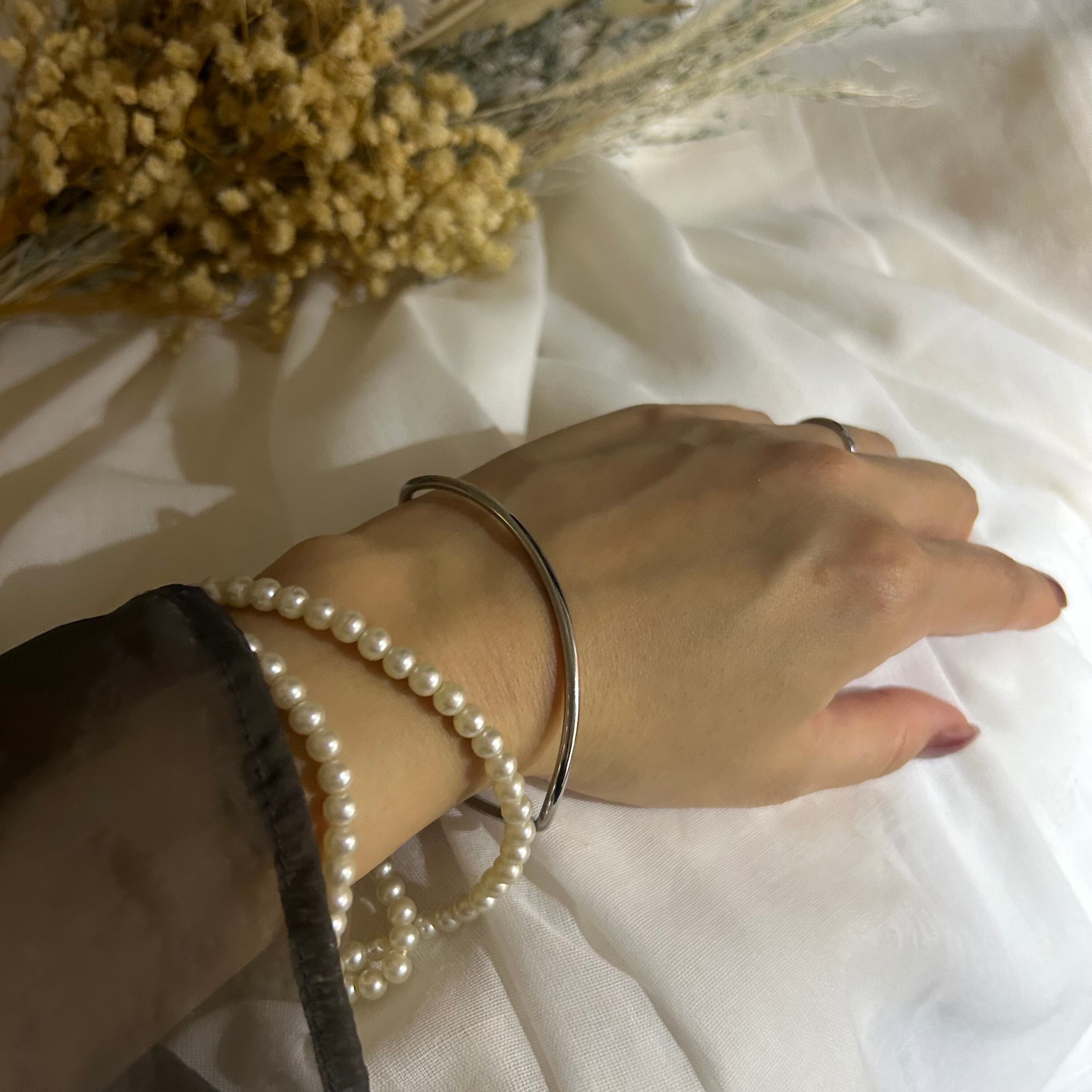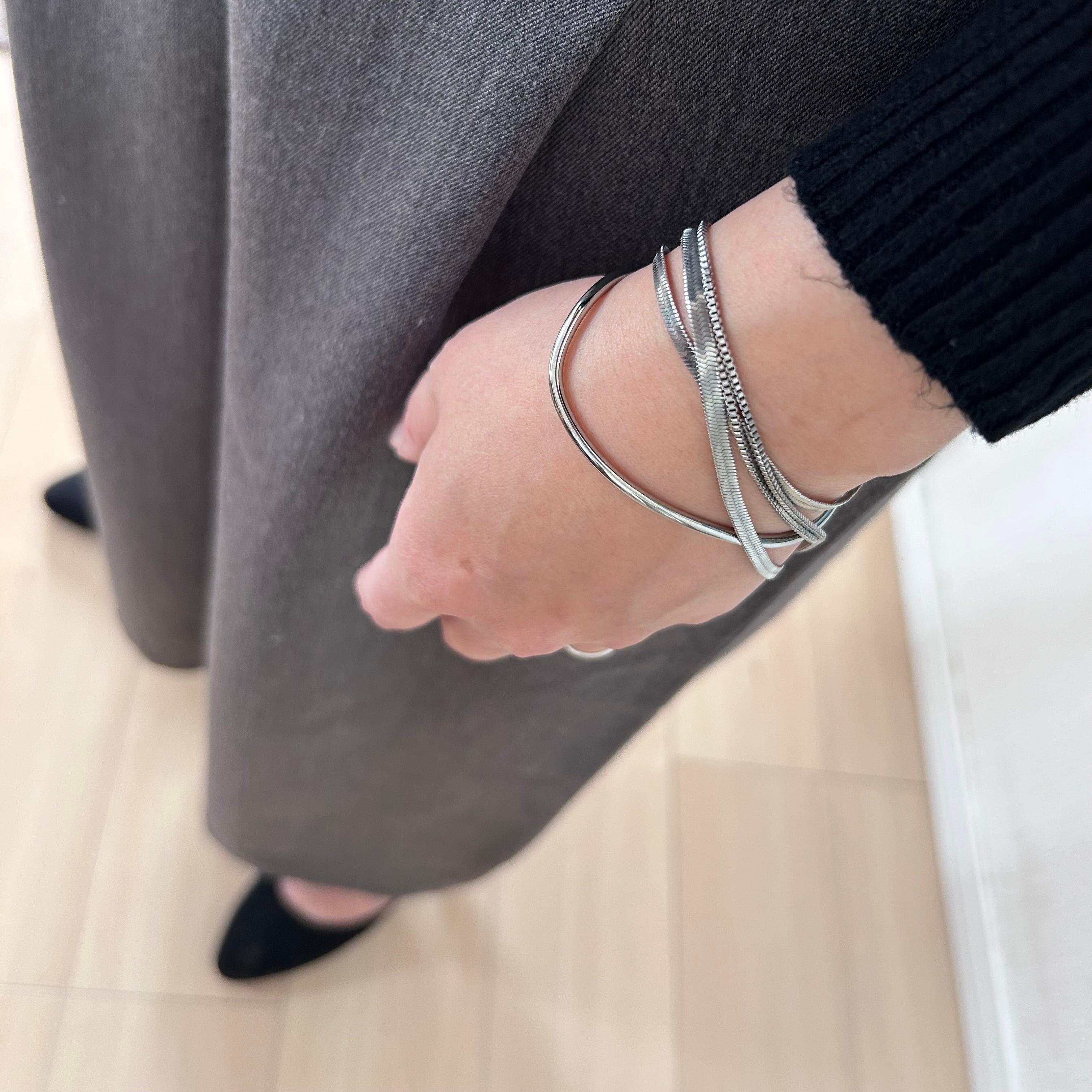 Stainless silver simple bangle bracelet ステンレス シルバー シンプル ブレスレット バングル つけっぱなし 金属アレルギー お洒落