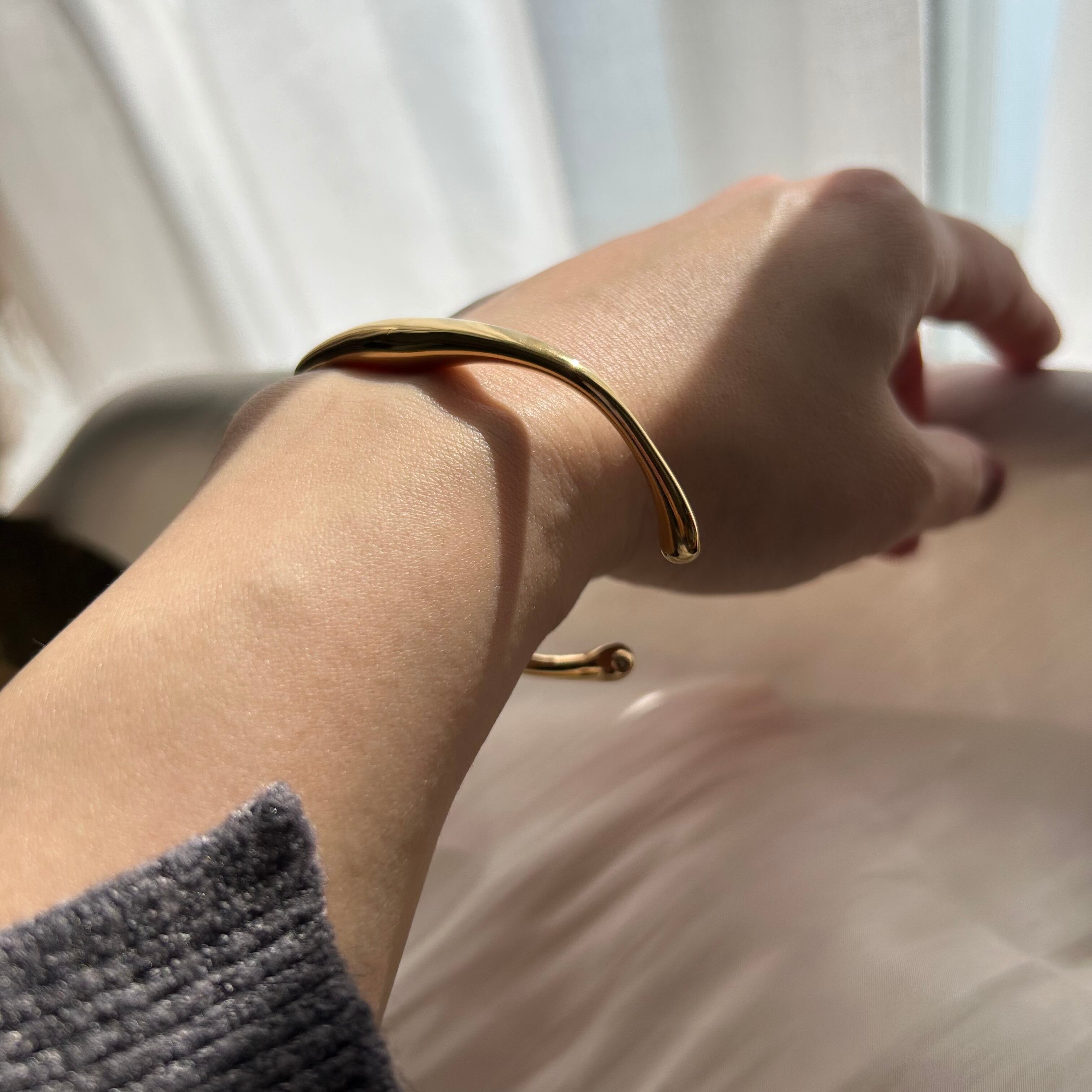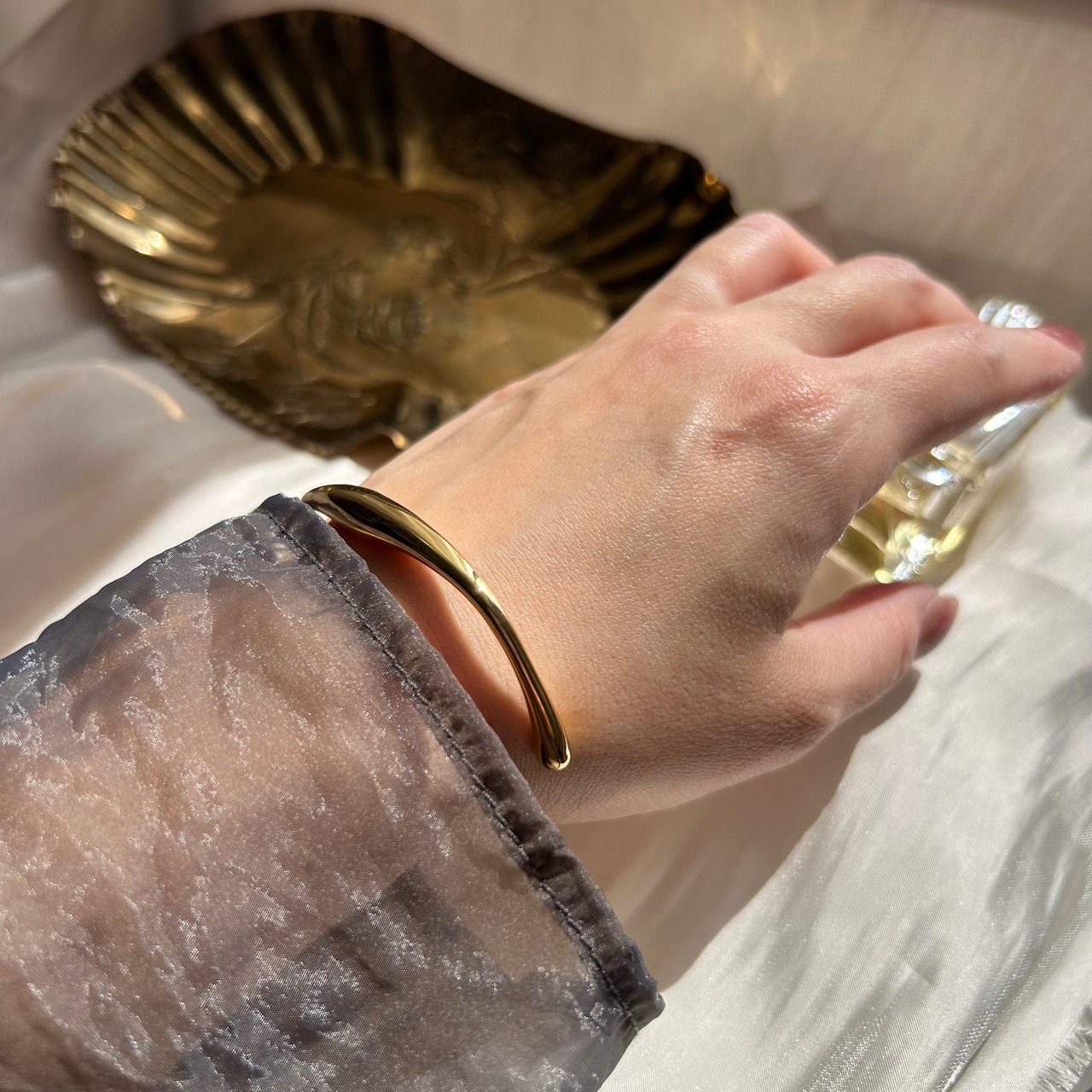 Nuance wave gold bangle stainless ステンレス ニュアンス ゴールド バングル つけっぱなし 金属アレルギー シンプル 大人 プレゼント ブレスレット
